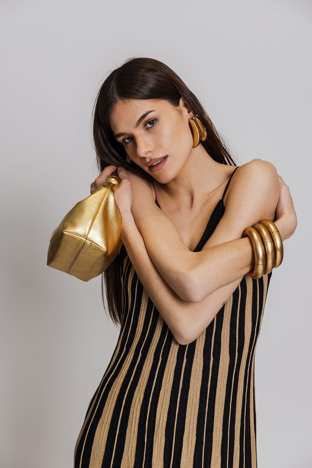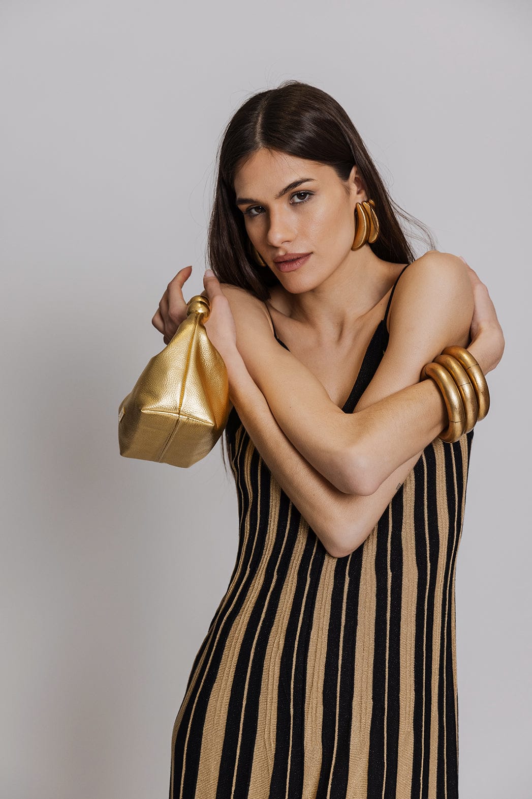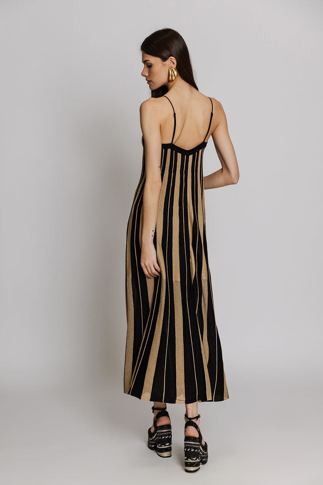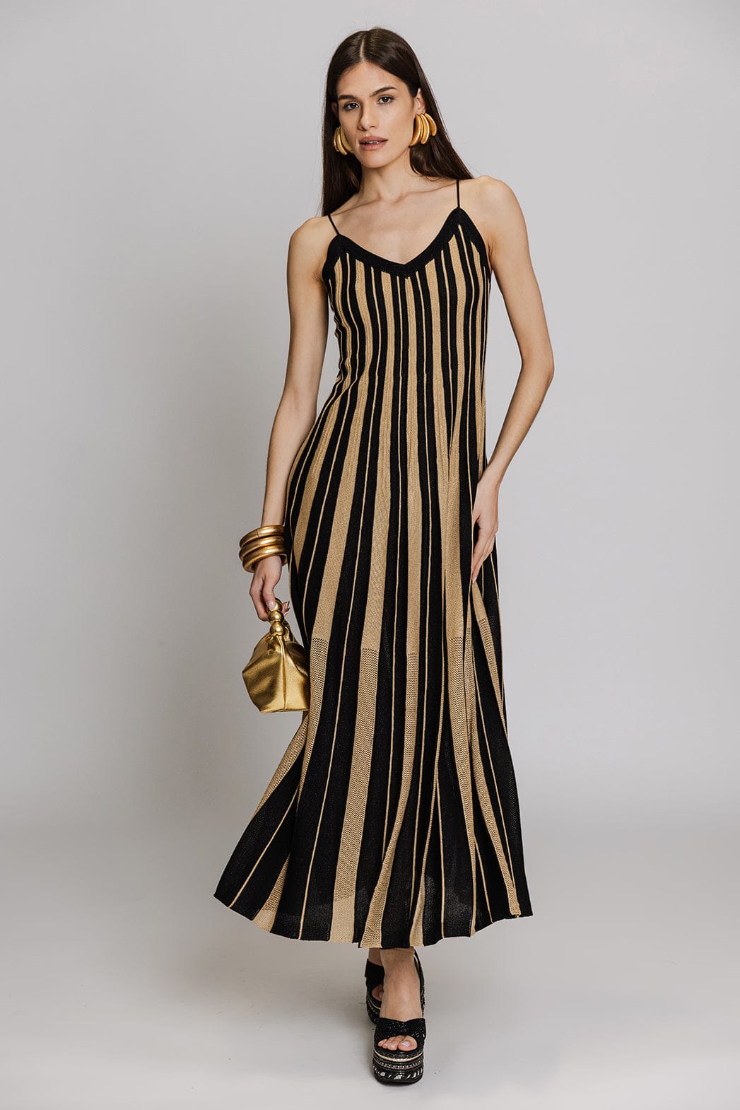Aggel Maxi Πλεκτό Φόρεμα Μαύρο/Χρυσό SS63202K