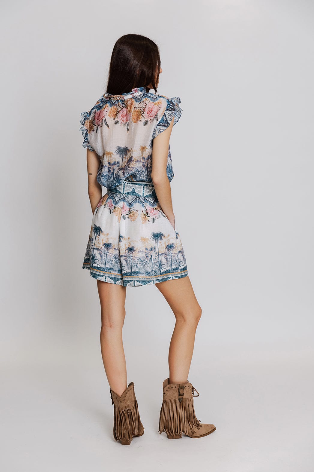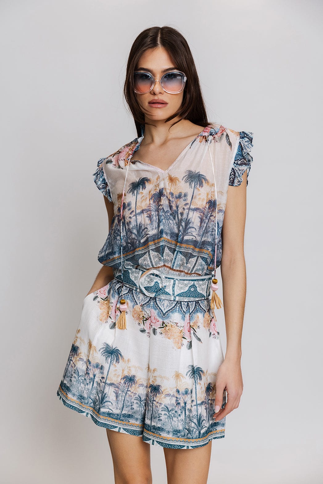 - Μπλούζα με κοντά μανίκια με βολάν