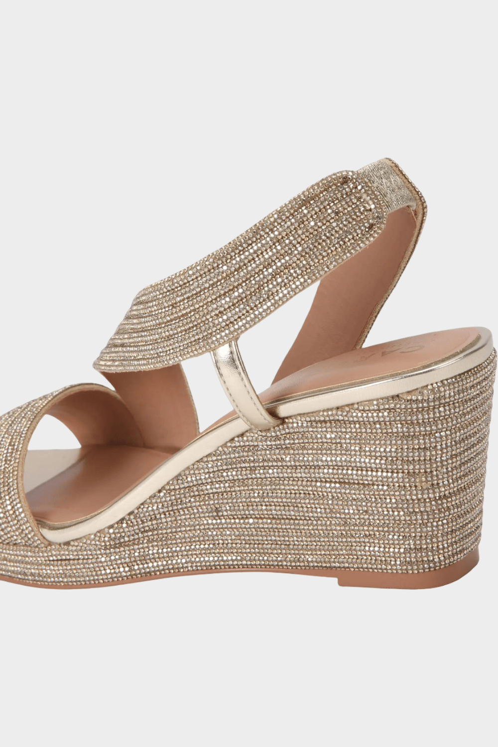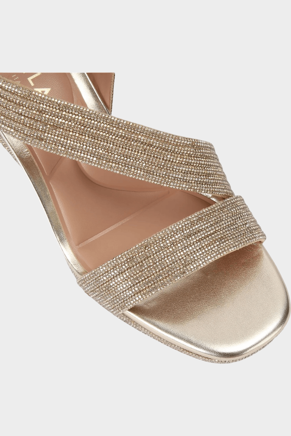 - Επάνω ιμάντες διακοσμημένοι με χρυσά κρύσταλλα σε στυλ slingback