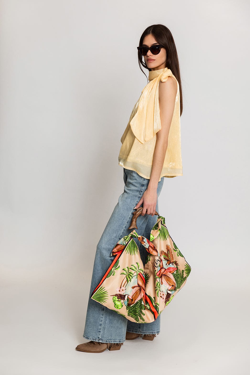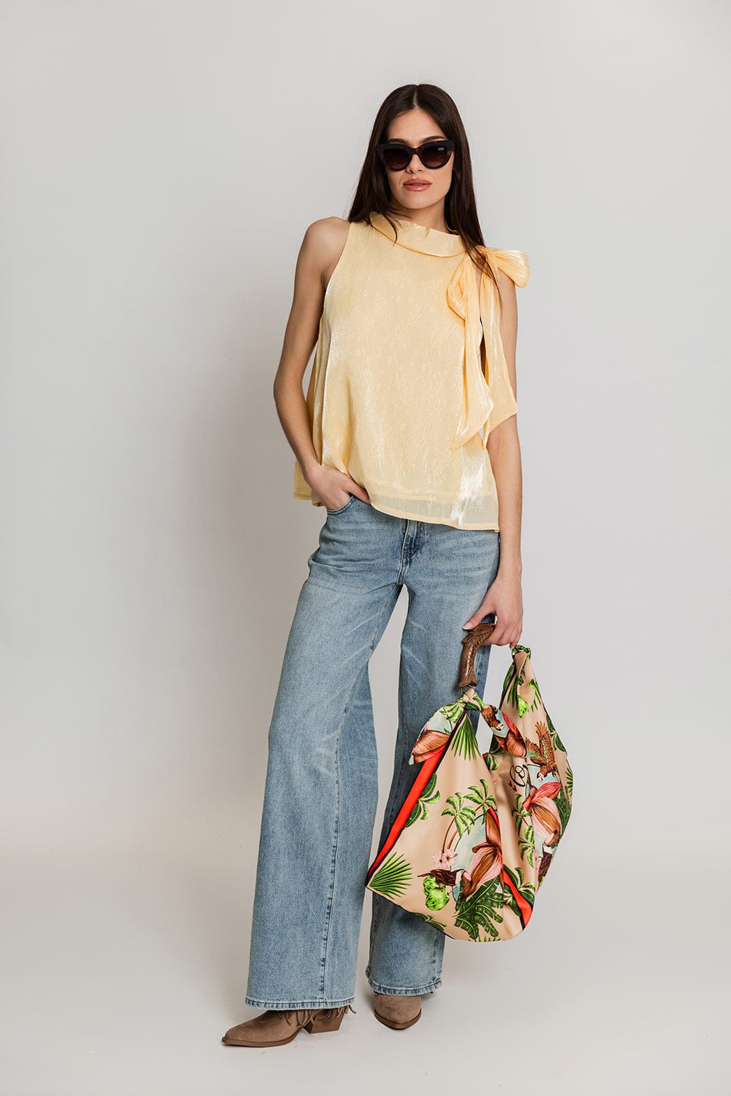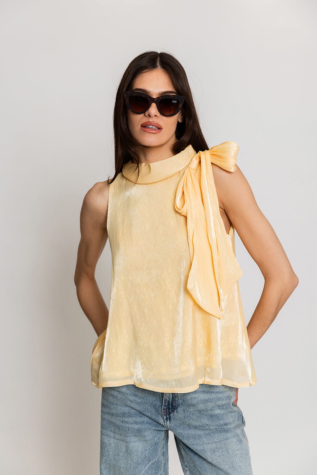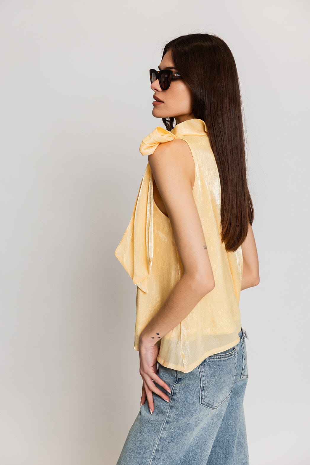 Elli White Αμάνικη Μπλούζα με Φιόγκο Κίτρινη 60158LT