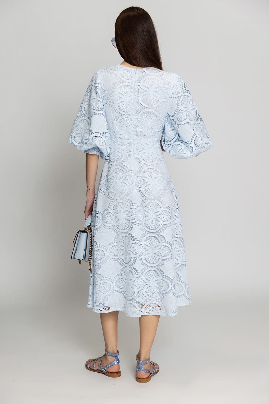 Elli White Midi Φόρεμα με Floral Δαντέλα 60472ΥΡ
