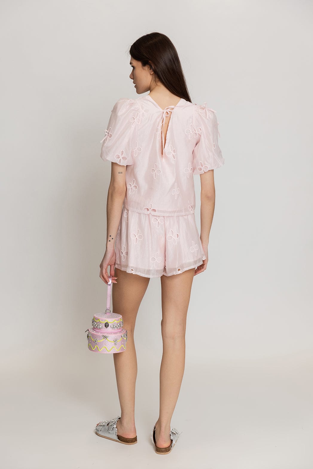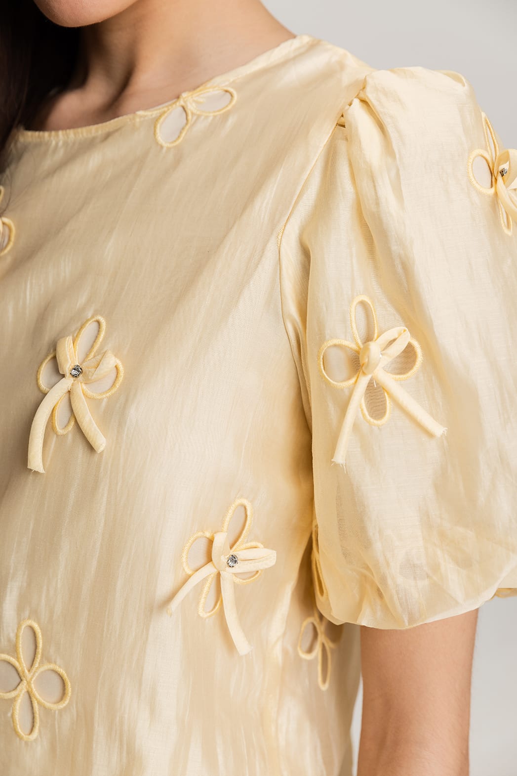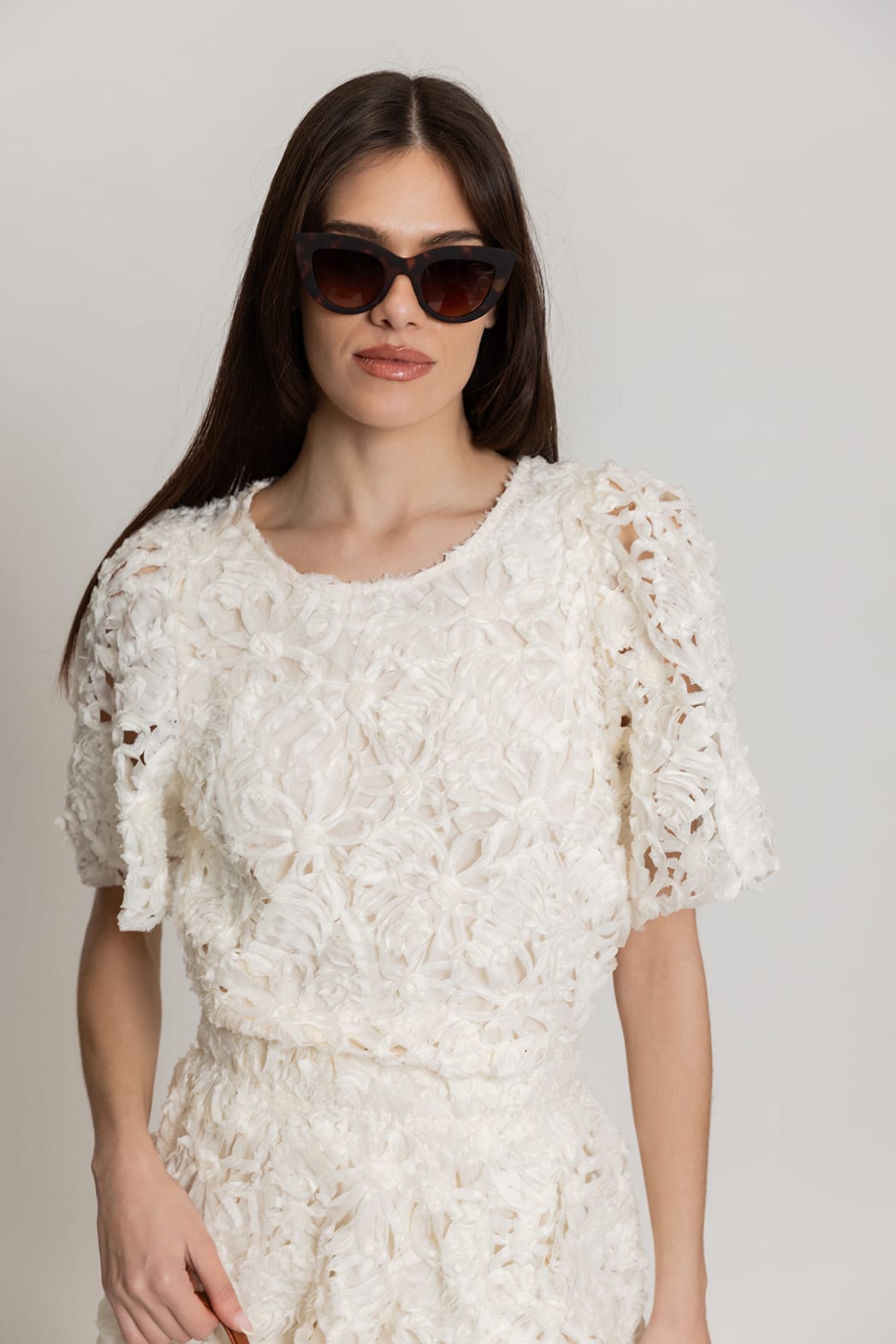 - Κεντημένο με λουλούδια στο ίδιο χρώμα