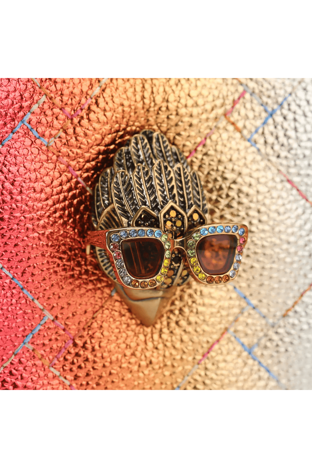 - Αντικέ κεφάλι αετού από ορείχαλκο με γυαλιά ηλίου με κρυστάλλους ουράνιου τόξου στο μπροστινό μέρος