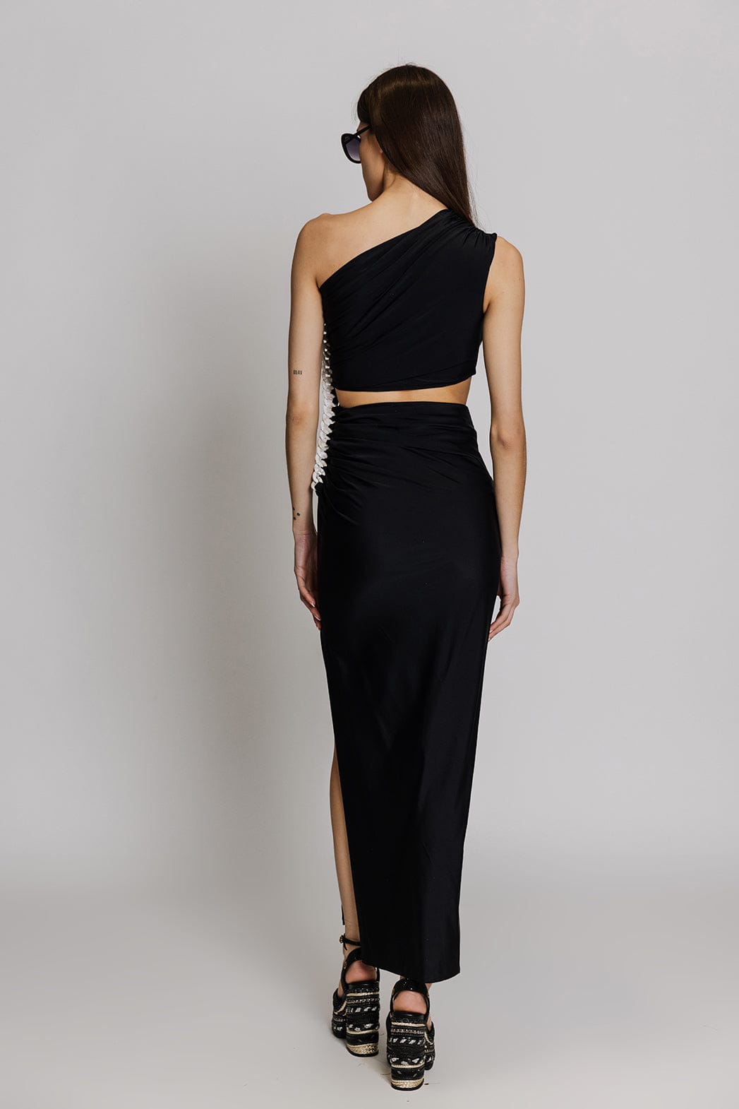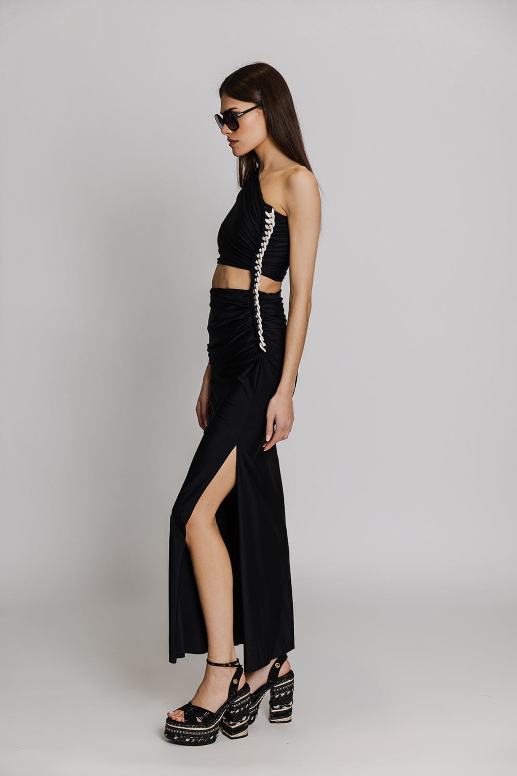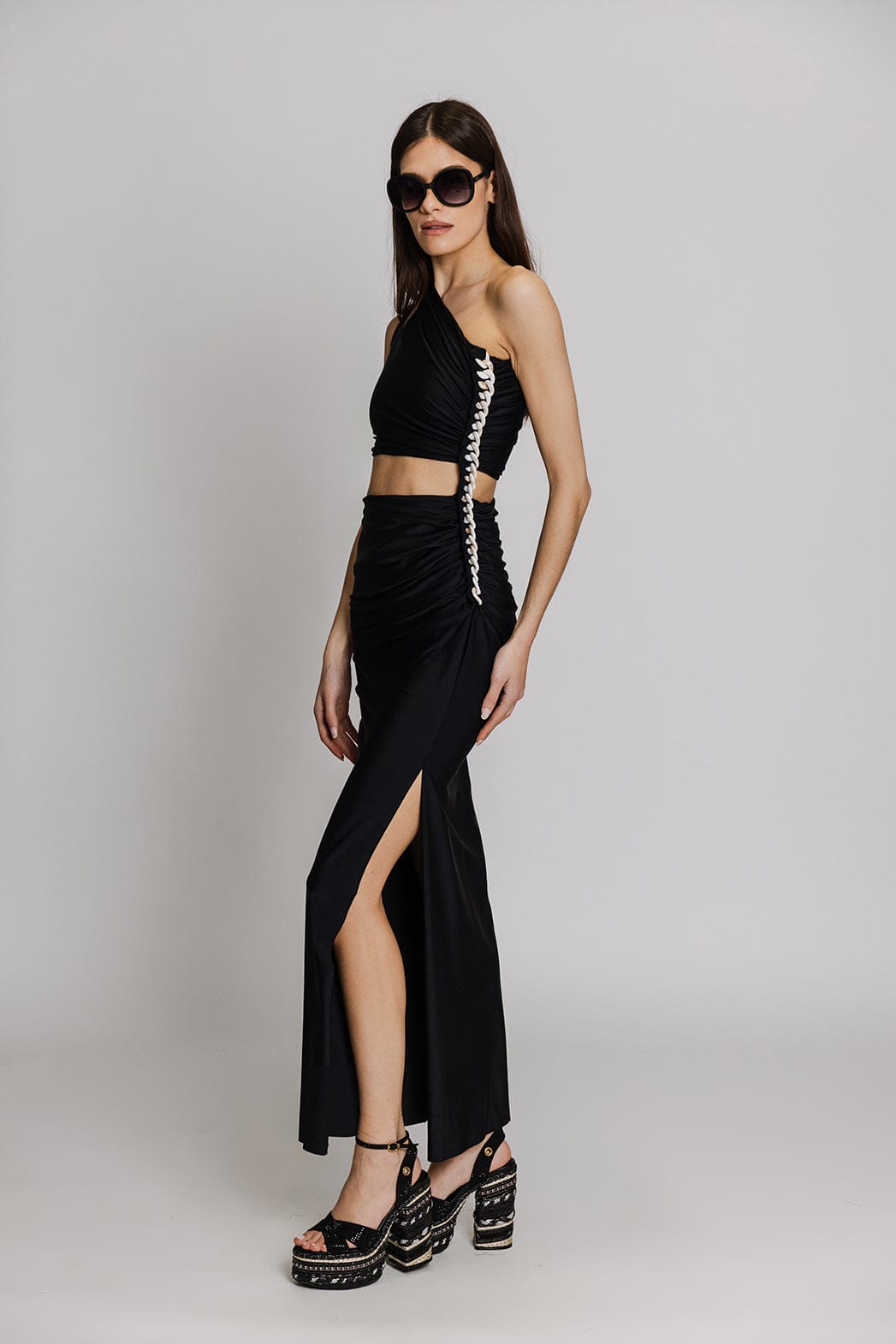 Lanca Μακρύ Φόρεμα με Έναν Ώμο Μαύρο 502VE011726
