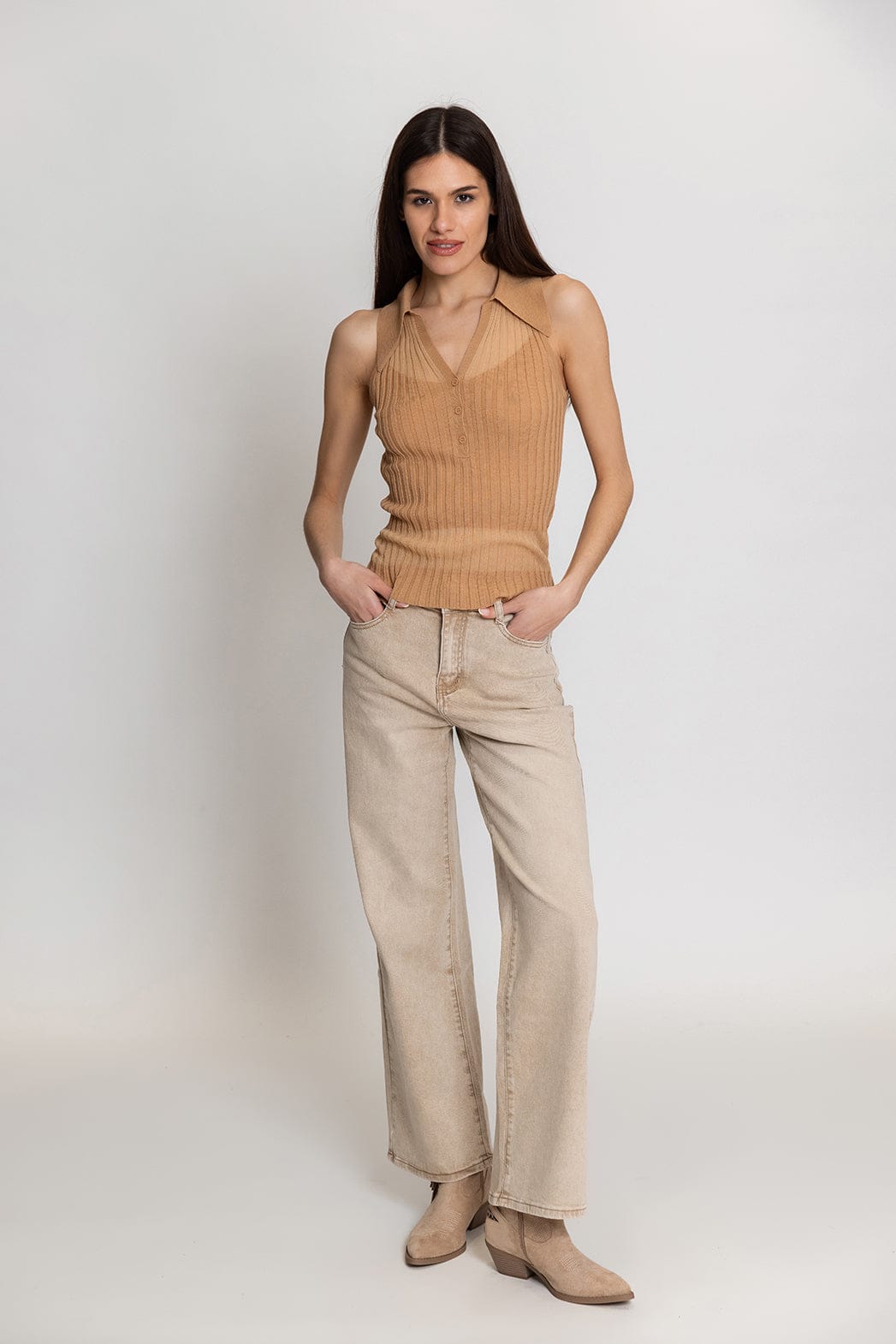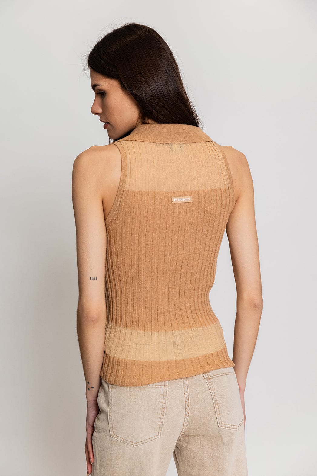 Pinko Foschia Rib Αμάνικη Πλεκτή Μπλούζα Μπεζ 106318 A34B C83