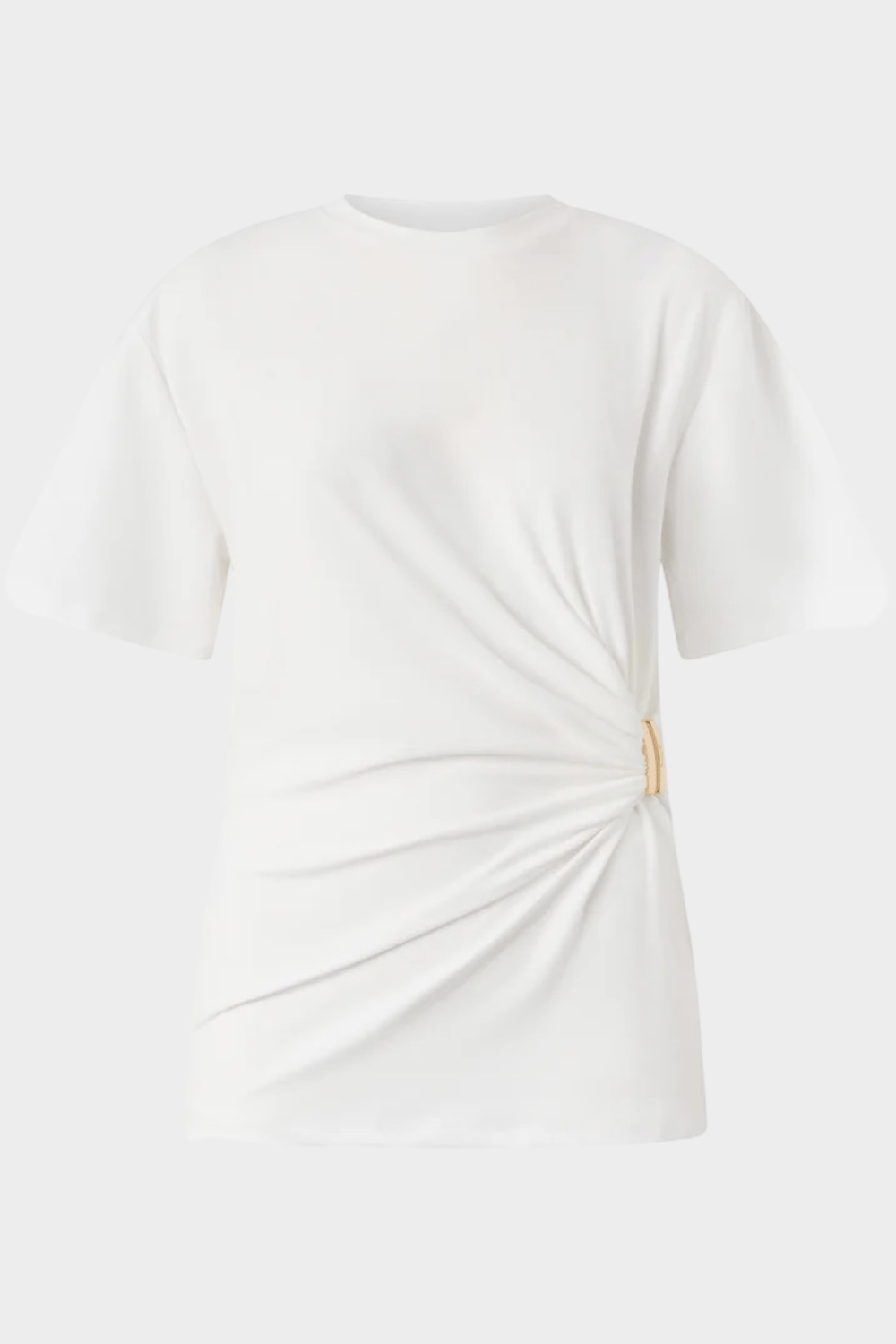 Pinko Mary T-Shirt με Σούρες και Χρυσή Λεπτομέρεια Άσπρο 106455 A35D Z05
