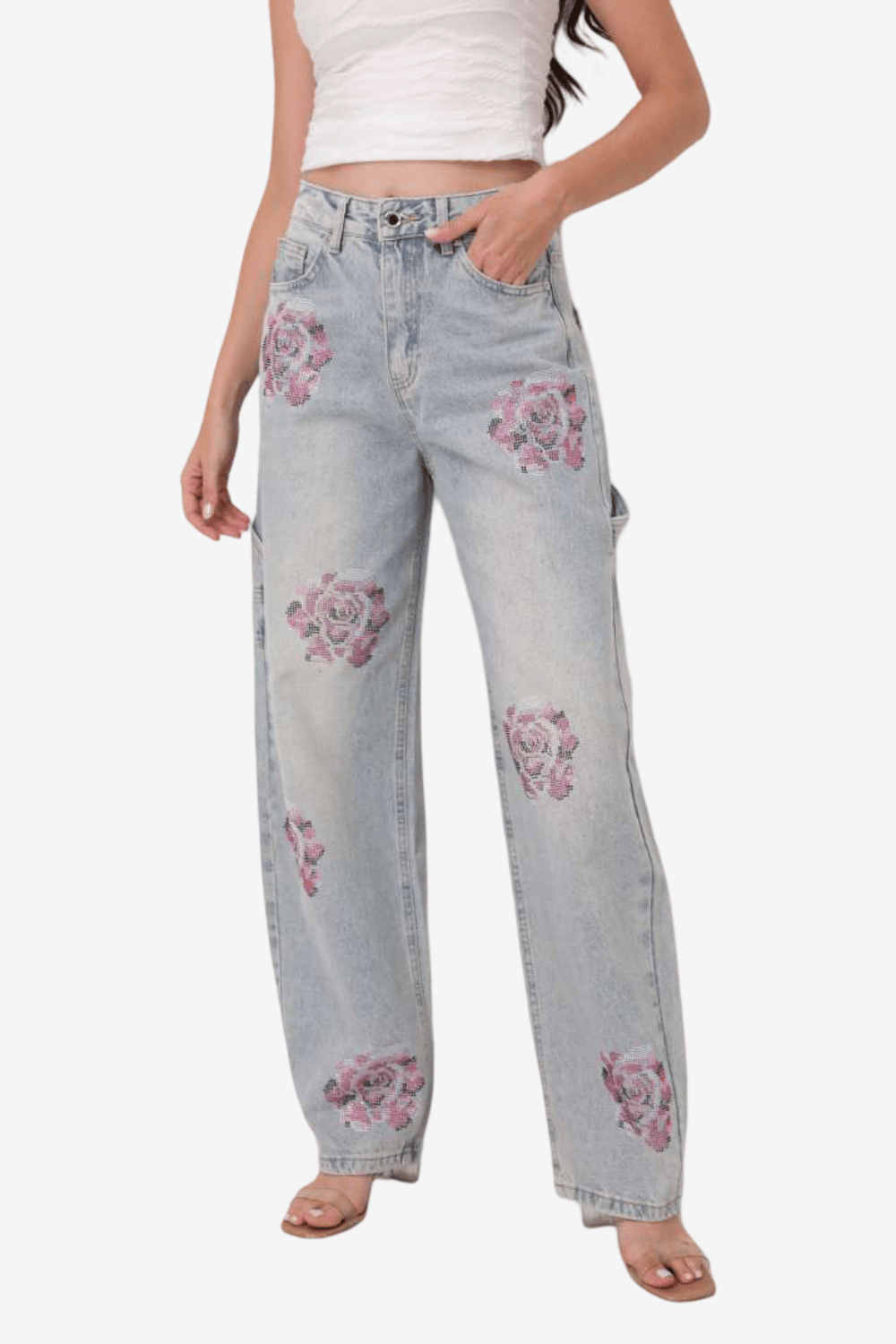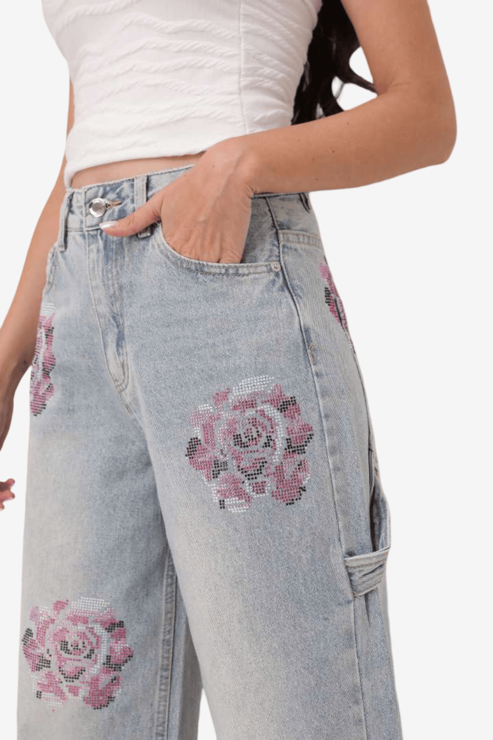 - Floral μοτίβο με strass σε ροζ αποχρώσεις