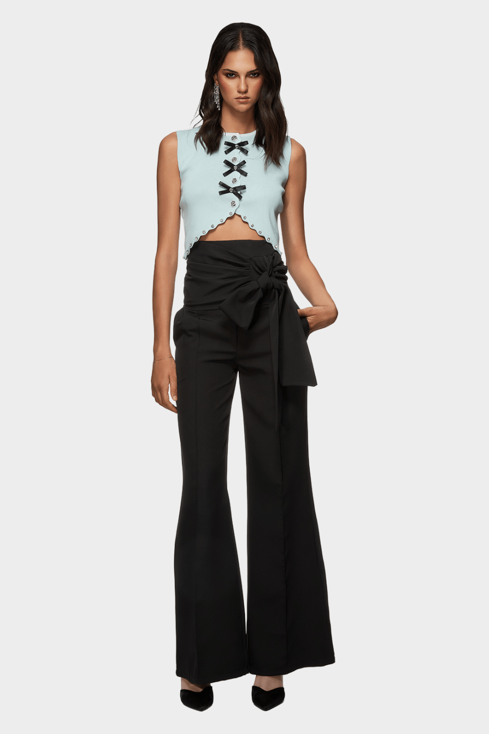 - Διακοσμημένο με μικρούς φιόγκους μπροστά και με κουμπιά με strass