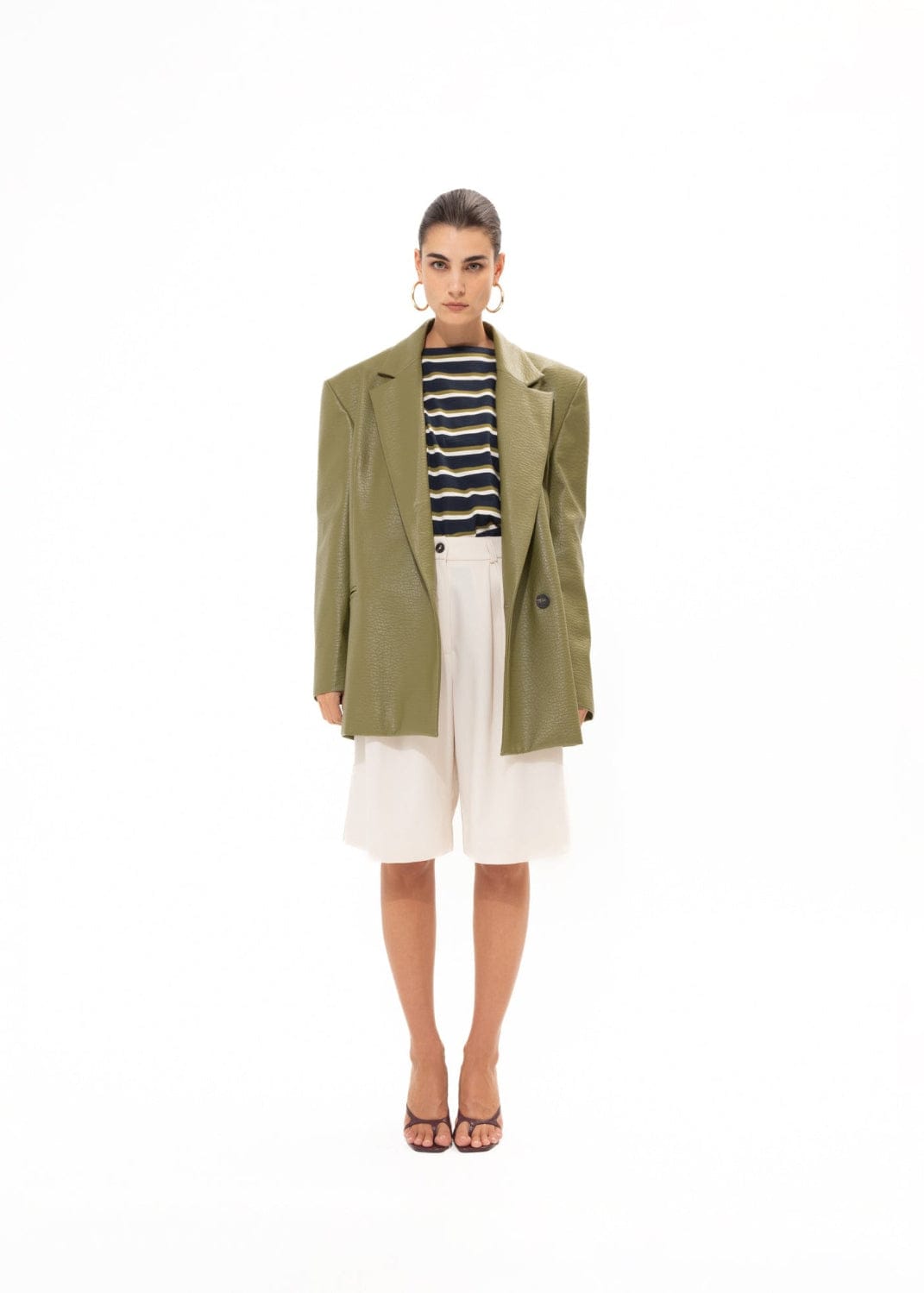 Vassia Kostara Khaki Faux Leather Blazer VKF26022