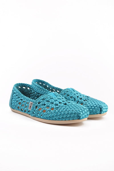 Κανονική τιμή €70,00 Εκπτωτική τιμή €35,00 έκπτωση 50%- Toms εσπαντρίγιες,από σατέν τυρκουάζ πλεγμένο ύφασμα