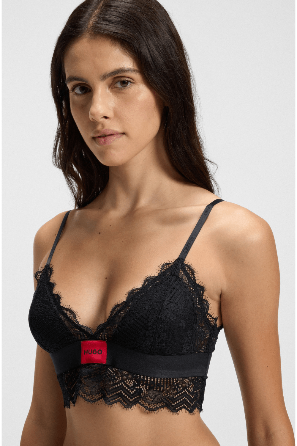 Hugo Padded Triangle Bra in Geometric Lace with Logo Label Κόκκινο 50502786