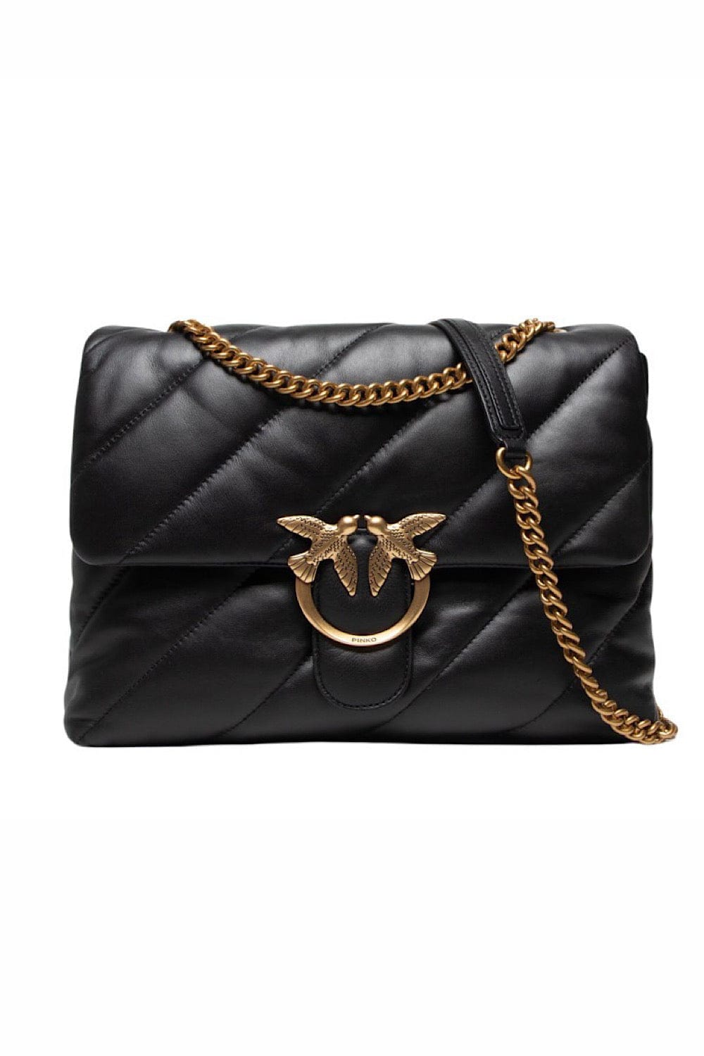 Pinko Love Puff Classic Μαύρη Τσάντα Ώμου με Χρυσή Αγκράφα 100038 A0F2 Z99Q