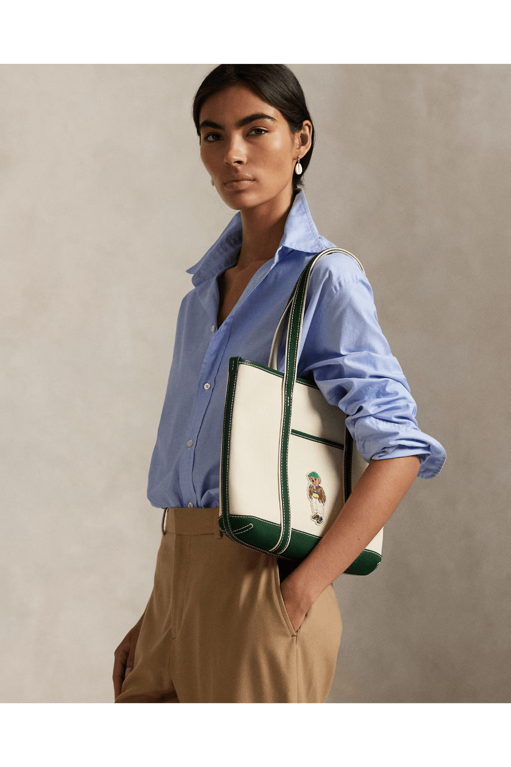 Polo Ralph Lauren Polo Bear Canvas Small Shopper Τσάντα Εκρού 428973078001