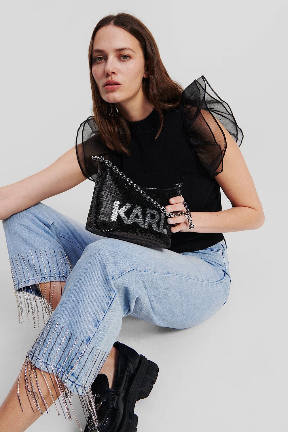 Karl Lagerfeld Rue St-Guillaume Medium Rhinestone Tote Τσάντα Μαύρη A4W50011