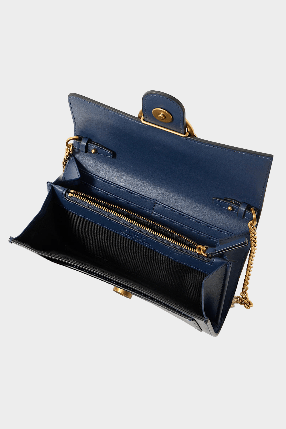 - Το λουρί από στρογγυλή μεταλλική αλυσίδα επιτρέπει τη μεταφορά του πορτοφολιού σαν τσαντάκι crossbody και είναι αφαιρούμενο