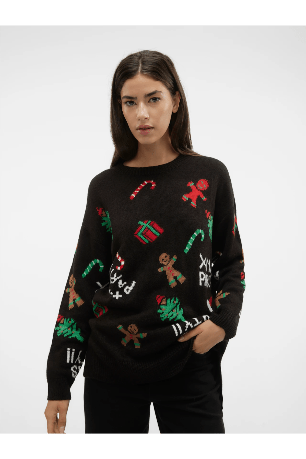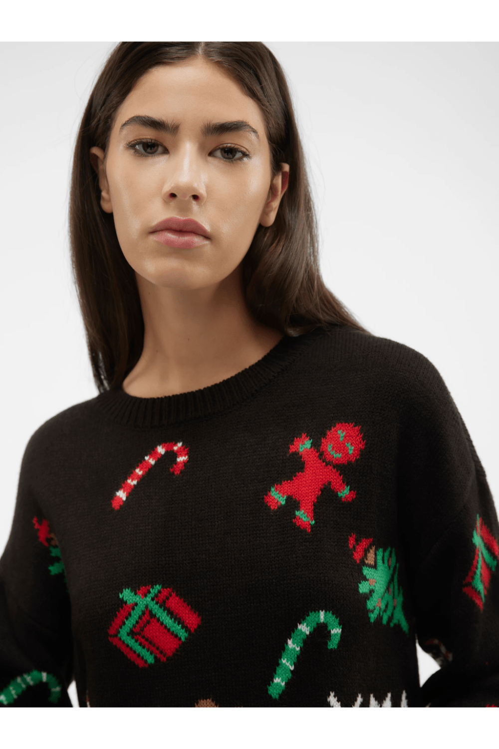 Vero Moda Glitter Μακρυμάνικη Πλεκτή Μπλούζα Μαύρο 10333074