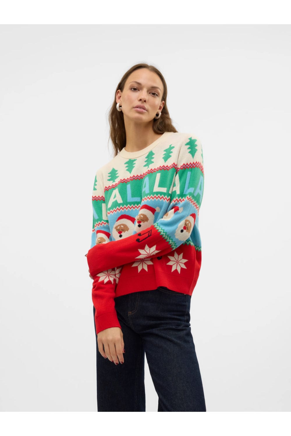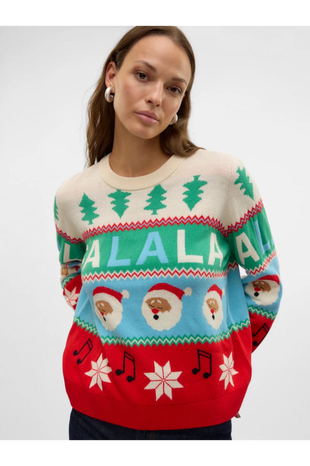 Vero Moda Glitter Μακρυμάνικη Πλεκτή Μπλούζα Μπεζ 10333074