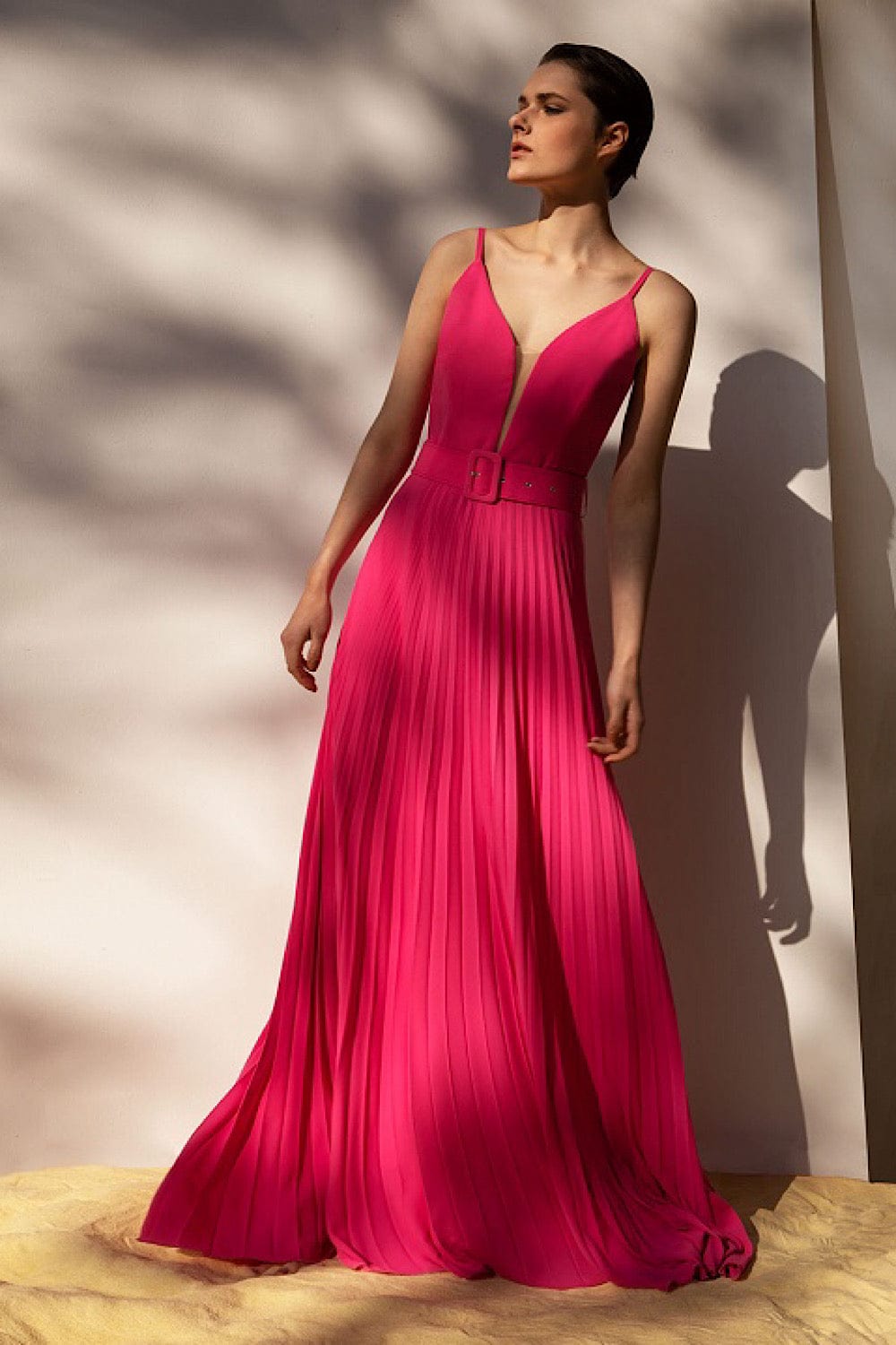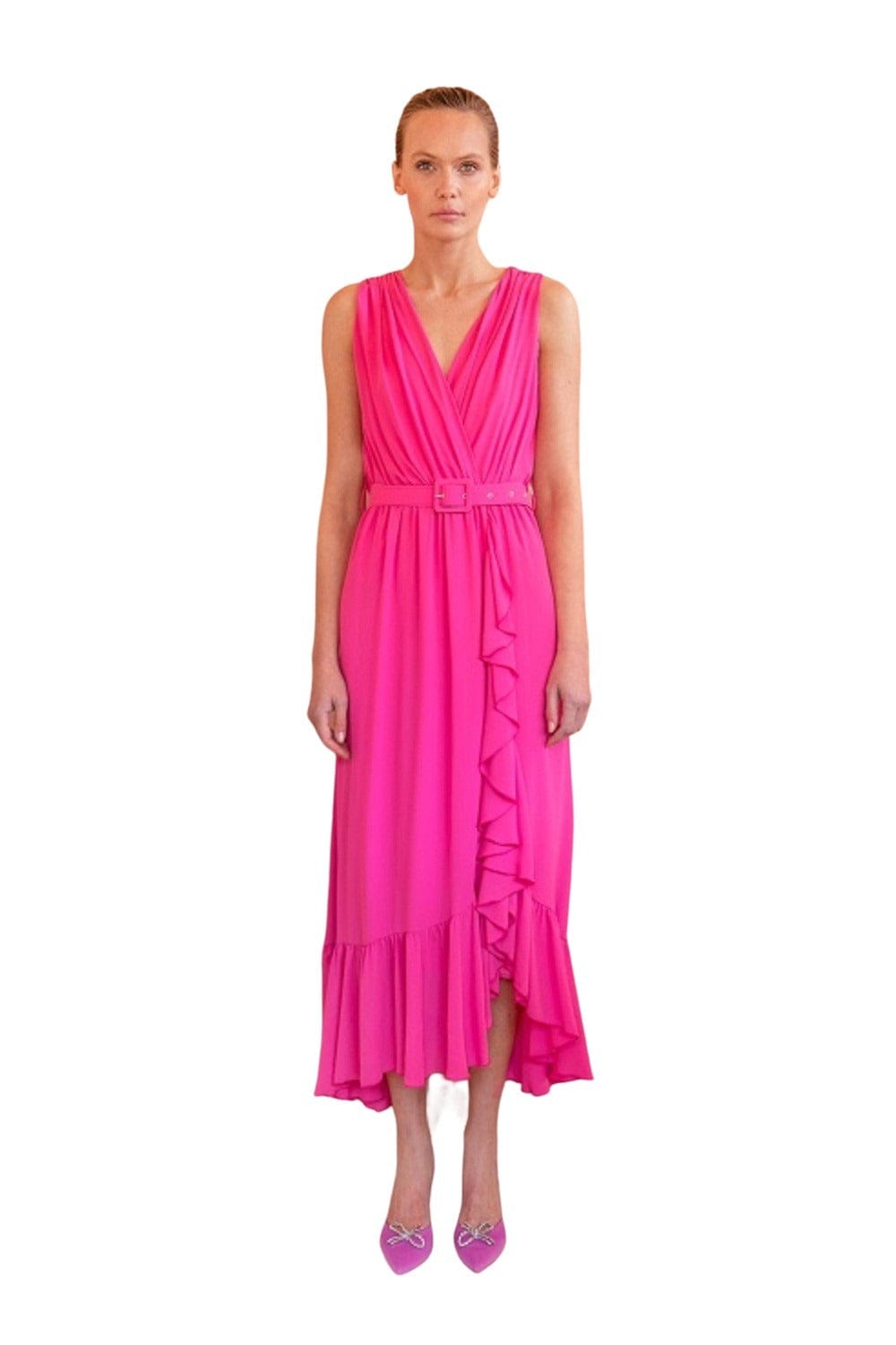 Desiree Φόρεμα με Τιράντες και Βολάν Φούξια 08.38176