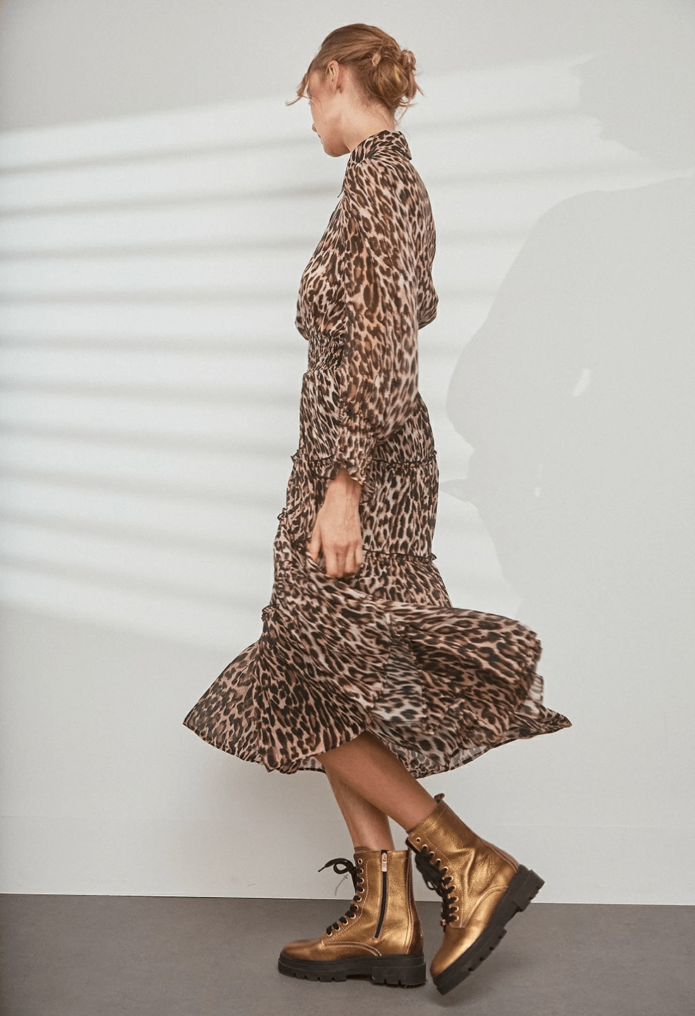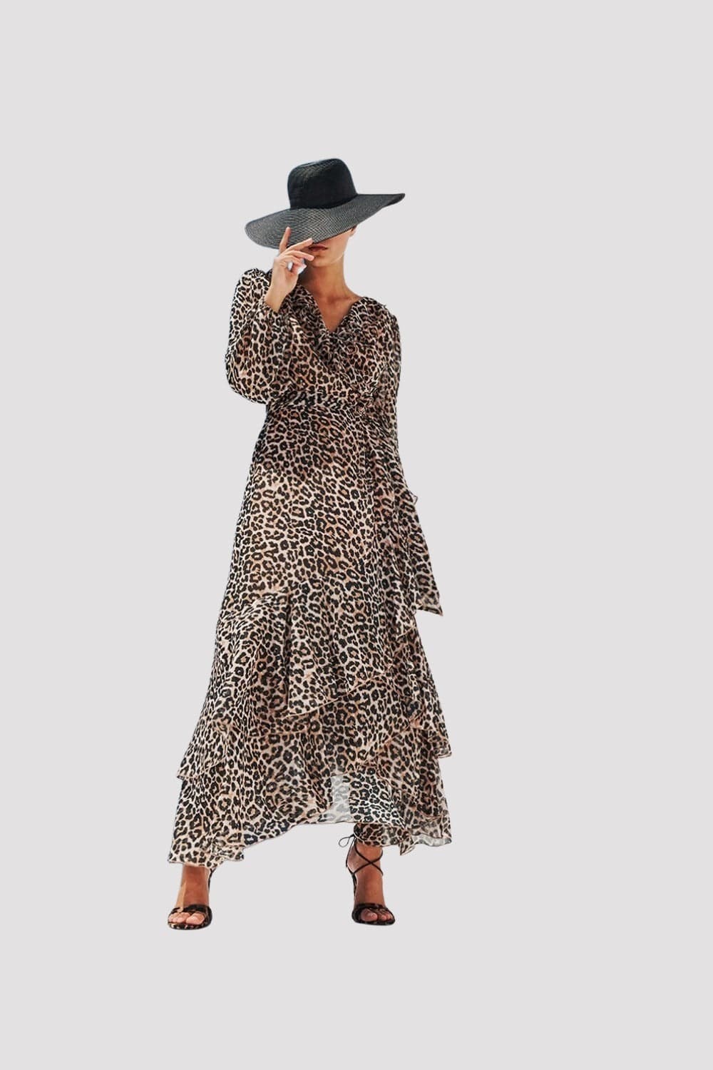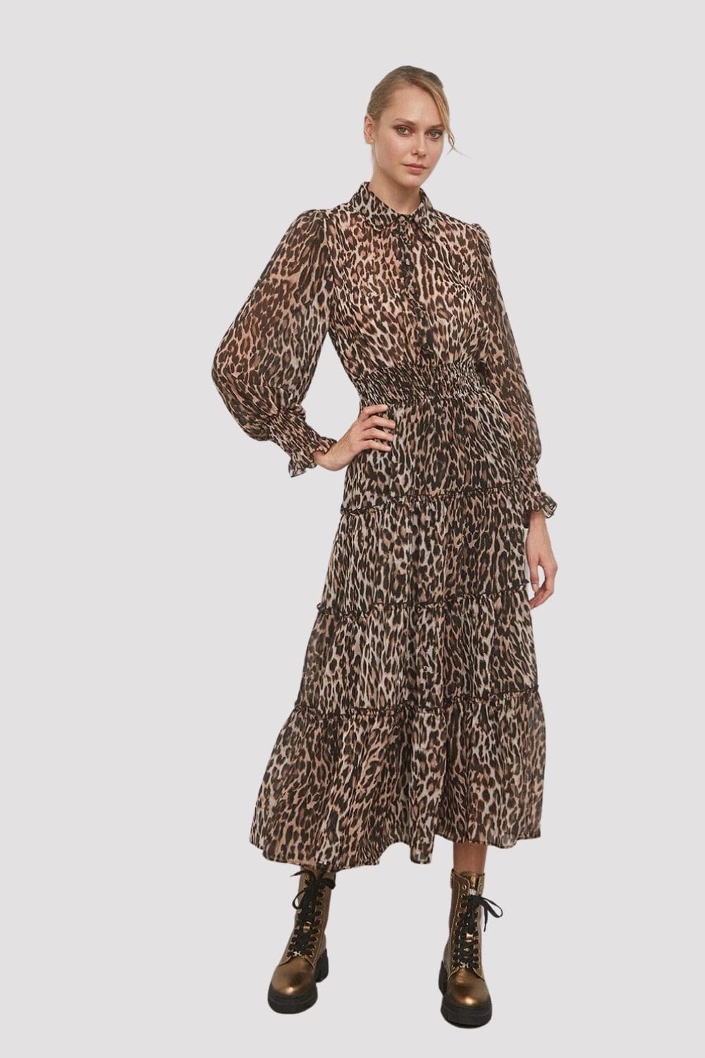 Desiree Μακρύ Φόρεμα με Βολάν Animal Print 08.43007