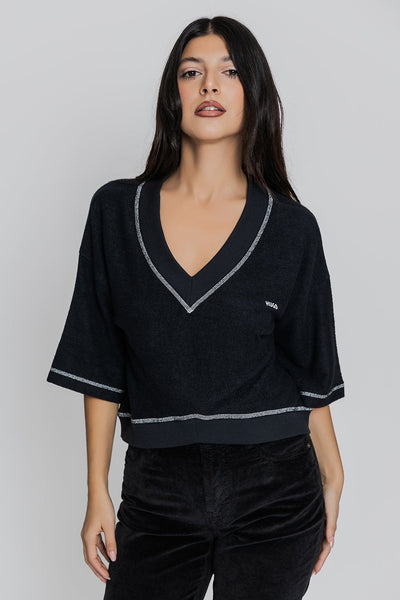 Only Melle Κοντομάνικη Μπλούζα με Glitter Μαύρη 15354907
