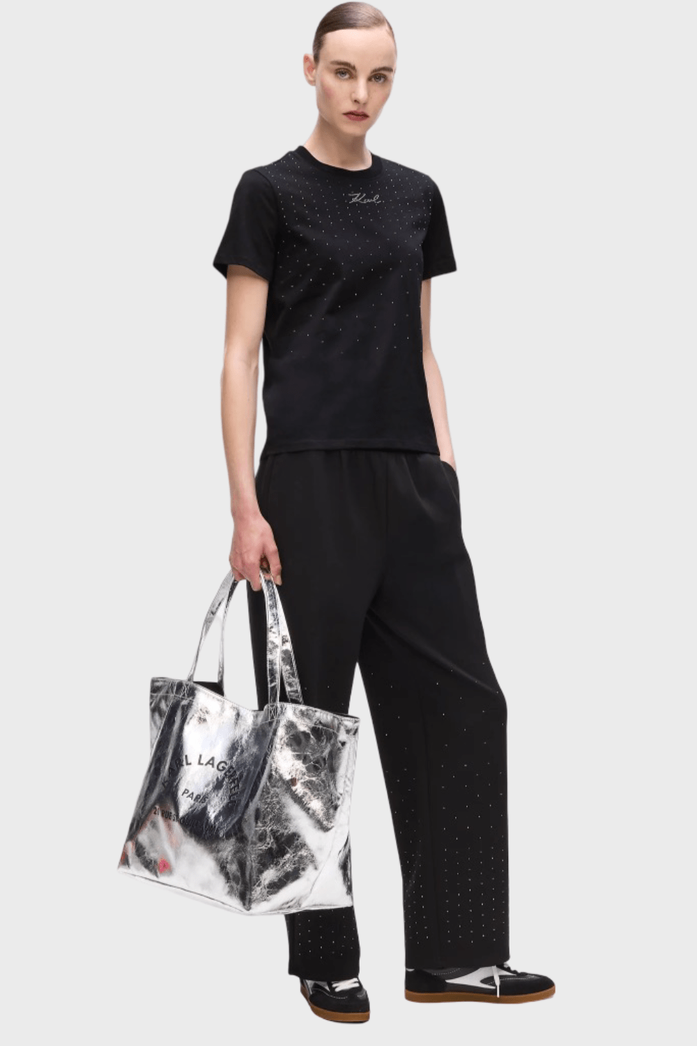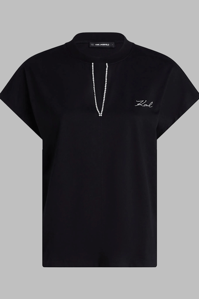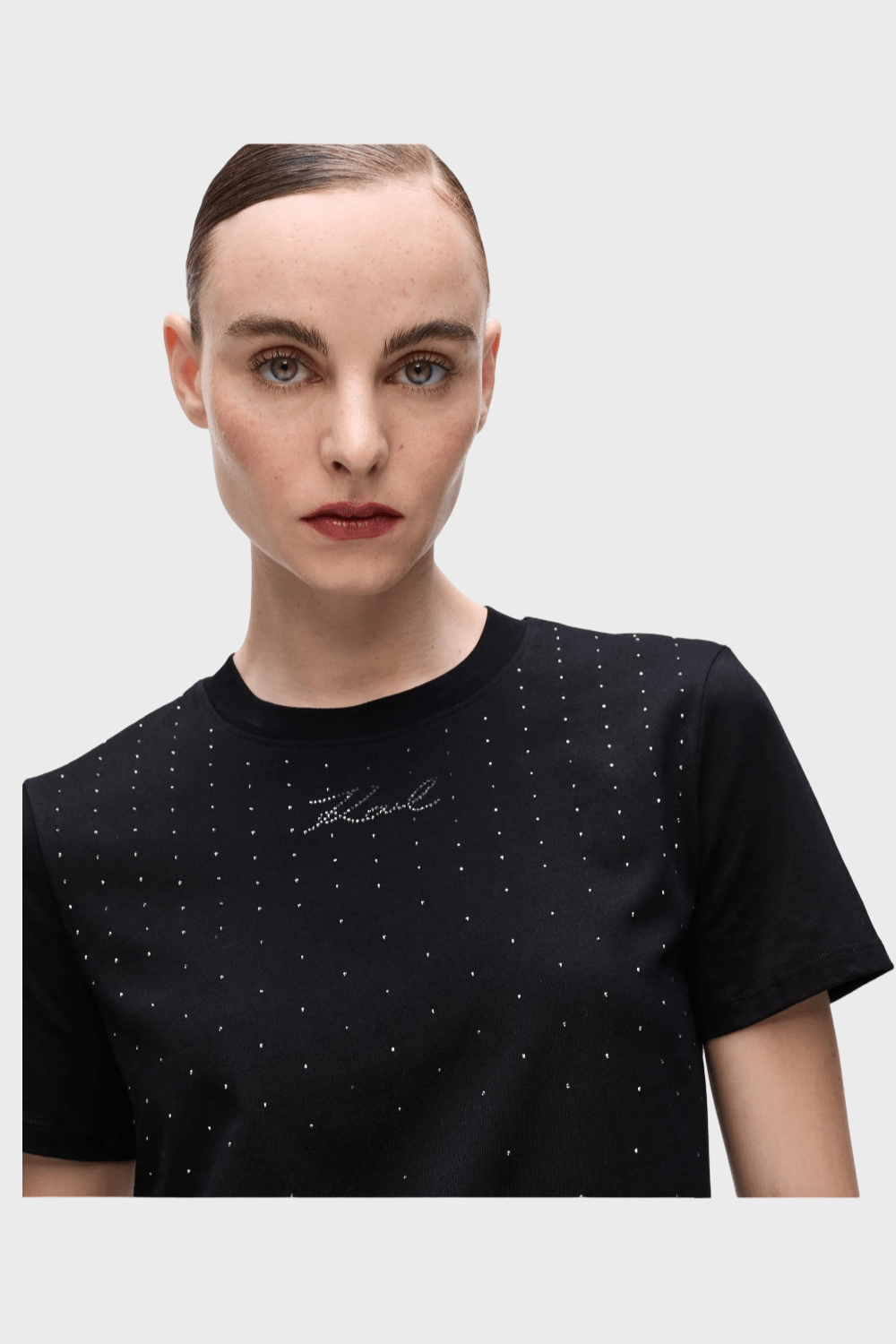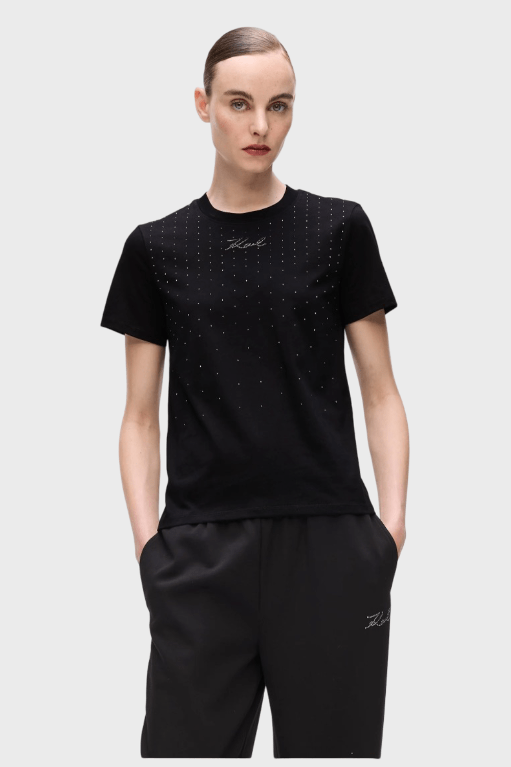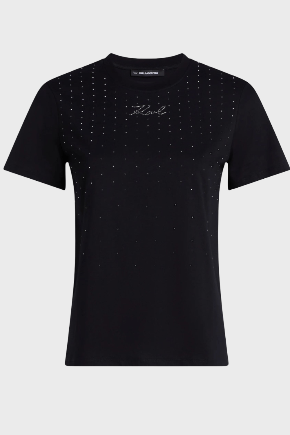 Karl Lagerfeld Rhinestone T-shirt Μαύρο AW417050 999