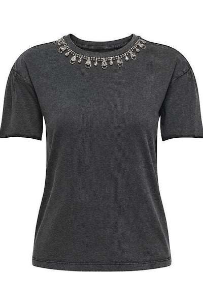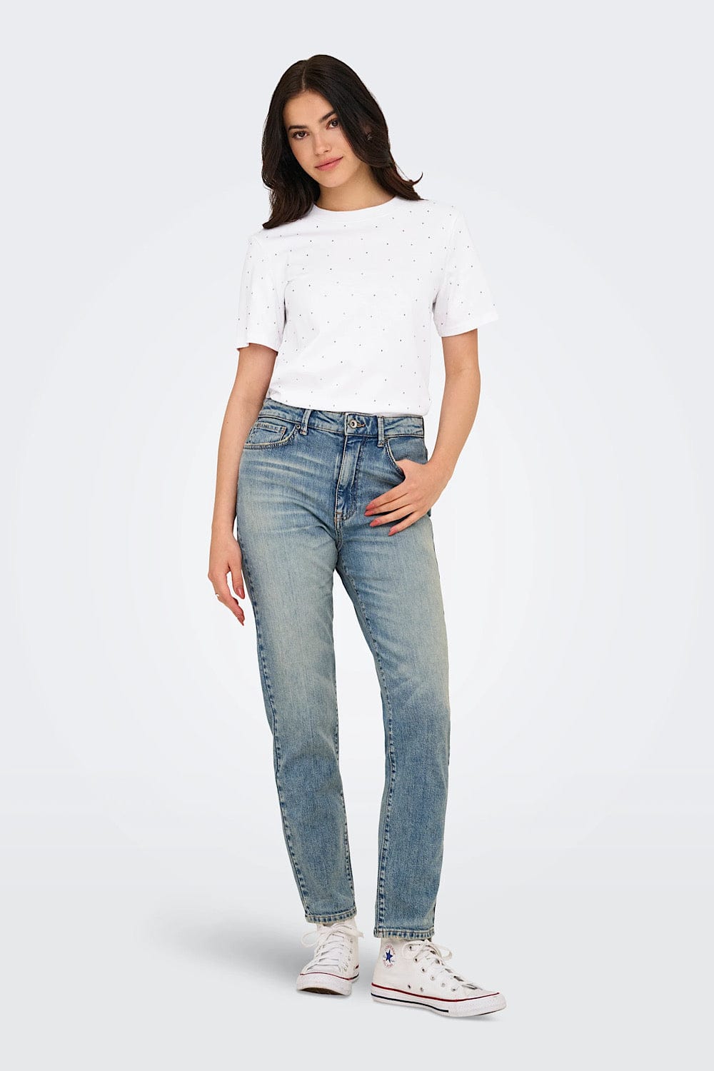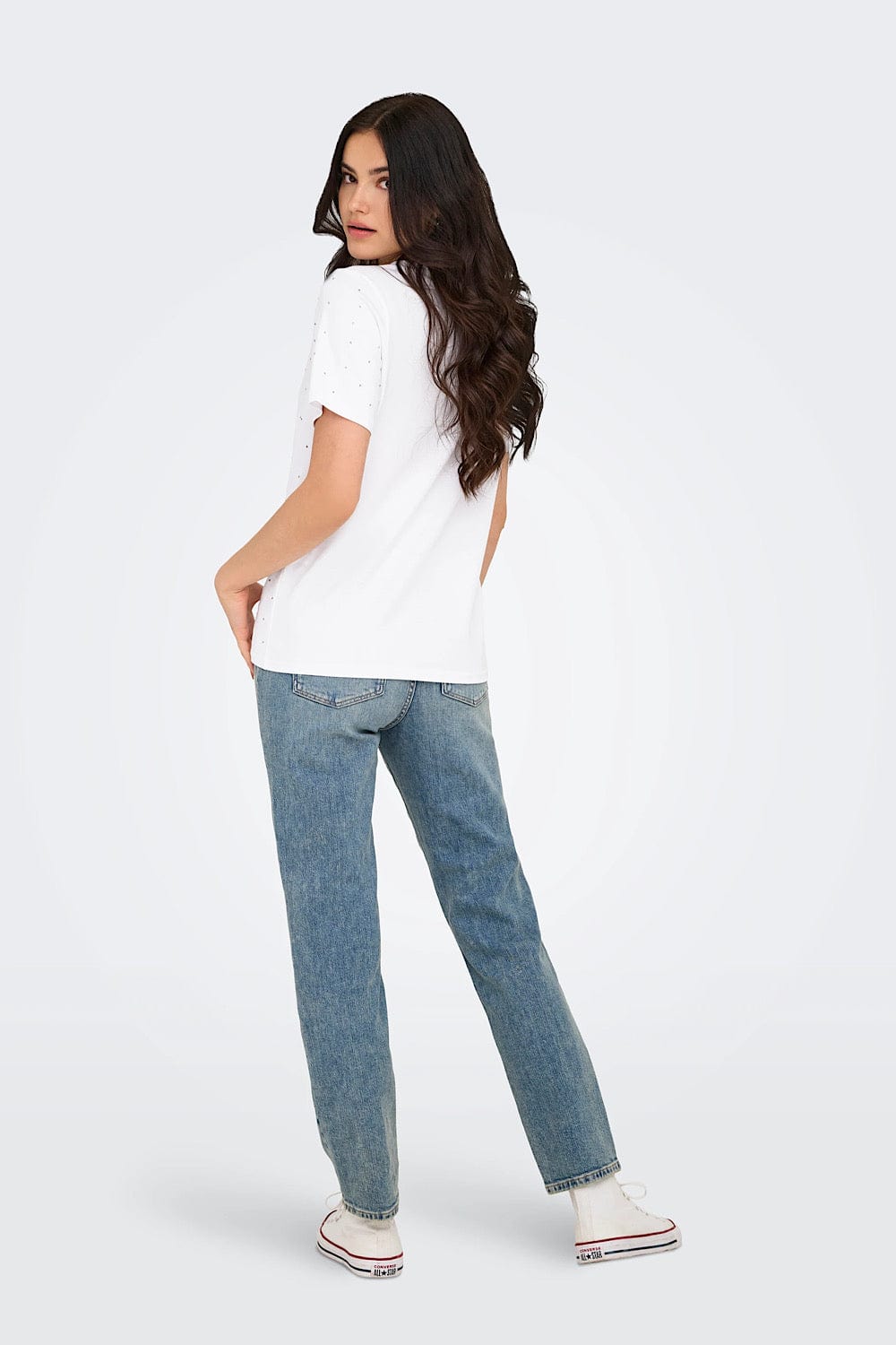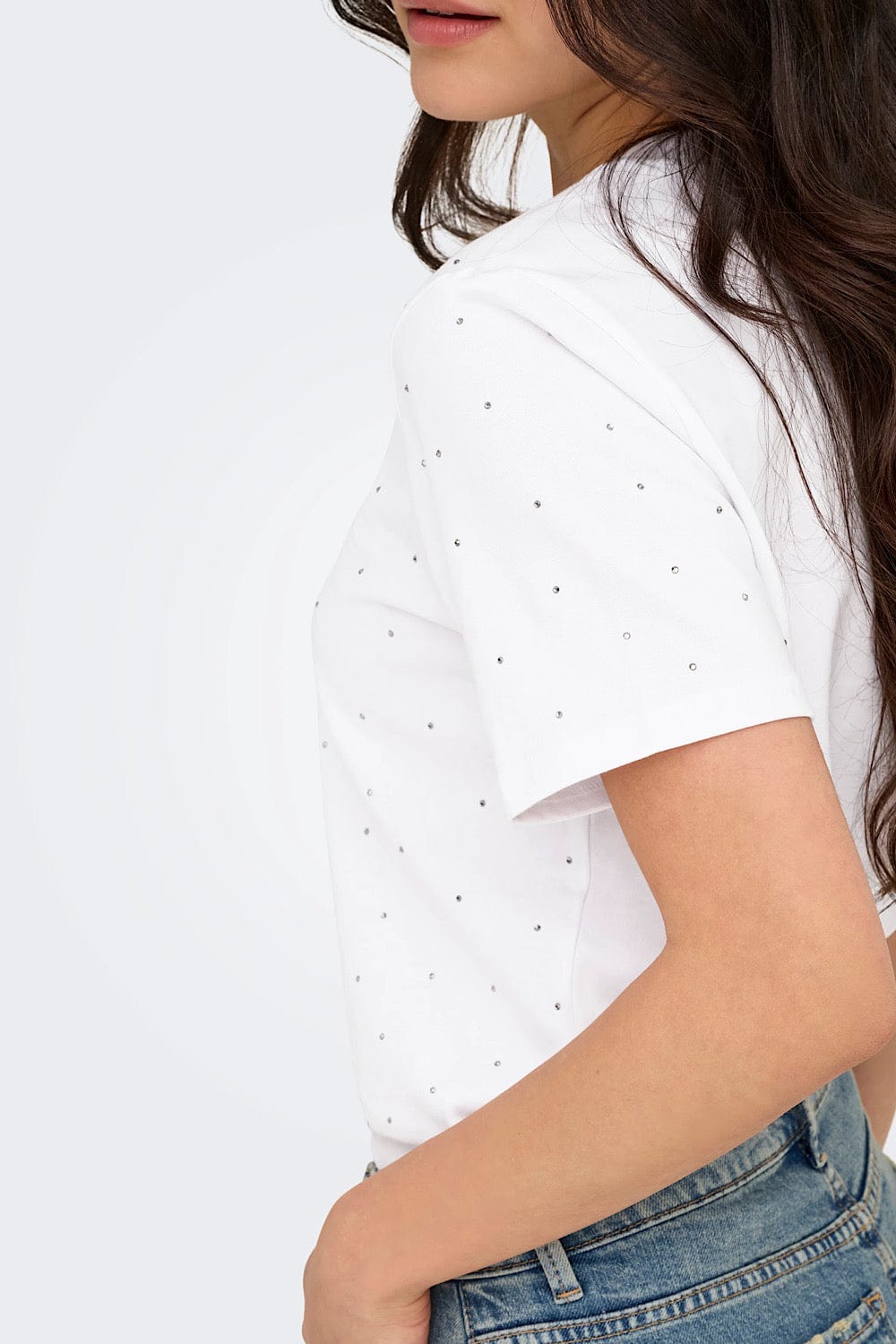 Only Monja Κοντομάνικο T-Shirt Με Στρας Άσπρο 1534939