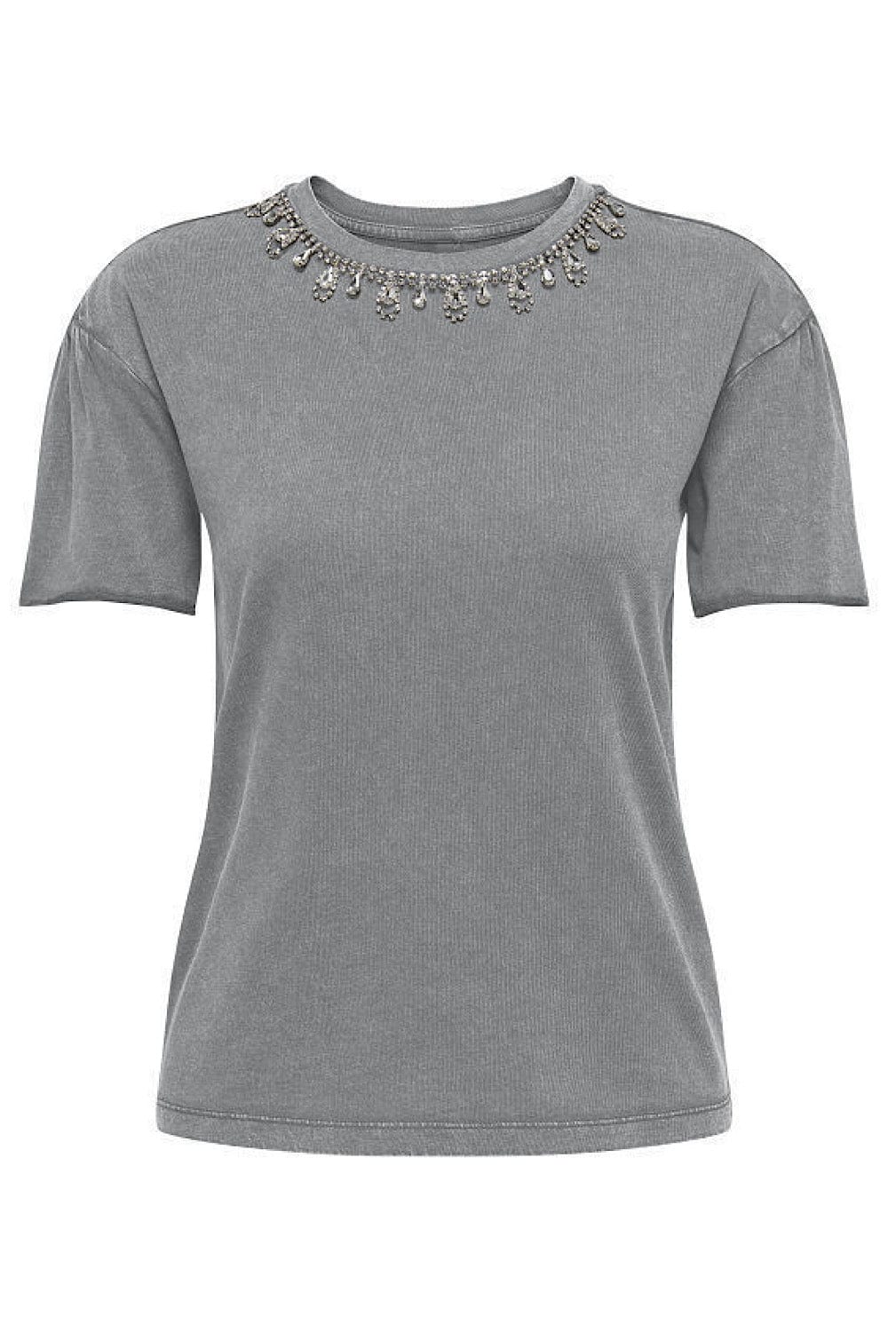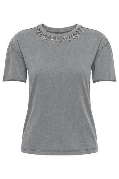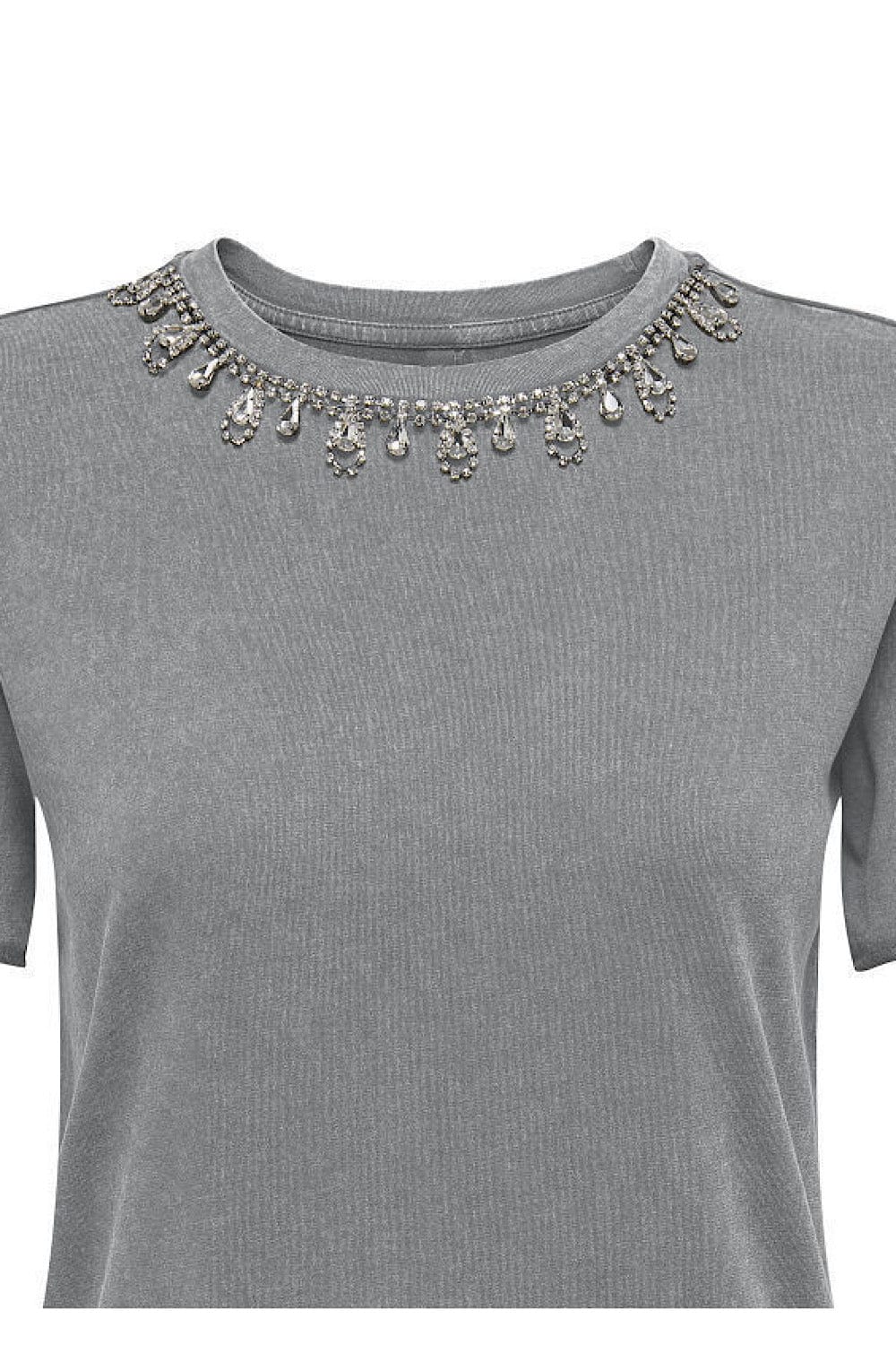 Only Melle Κοντομάνικη Μπλούζα με Glitter Γκρι 15354907