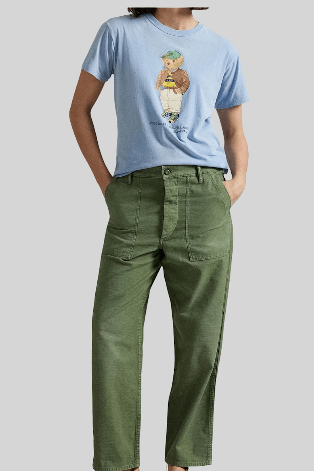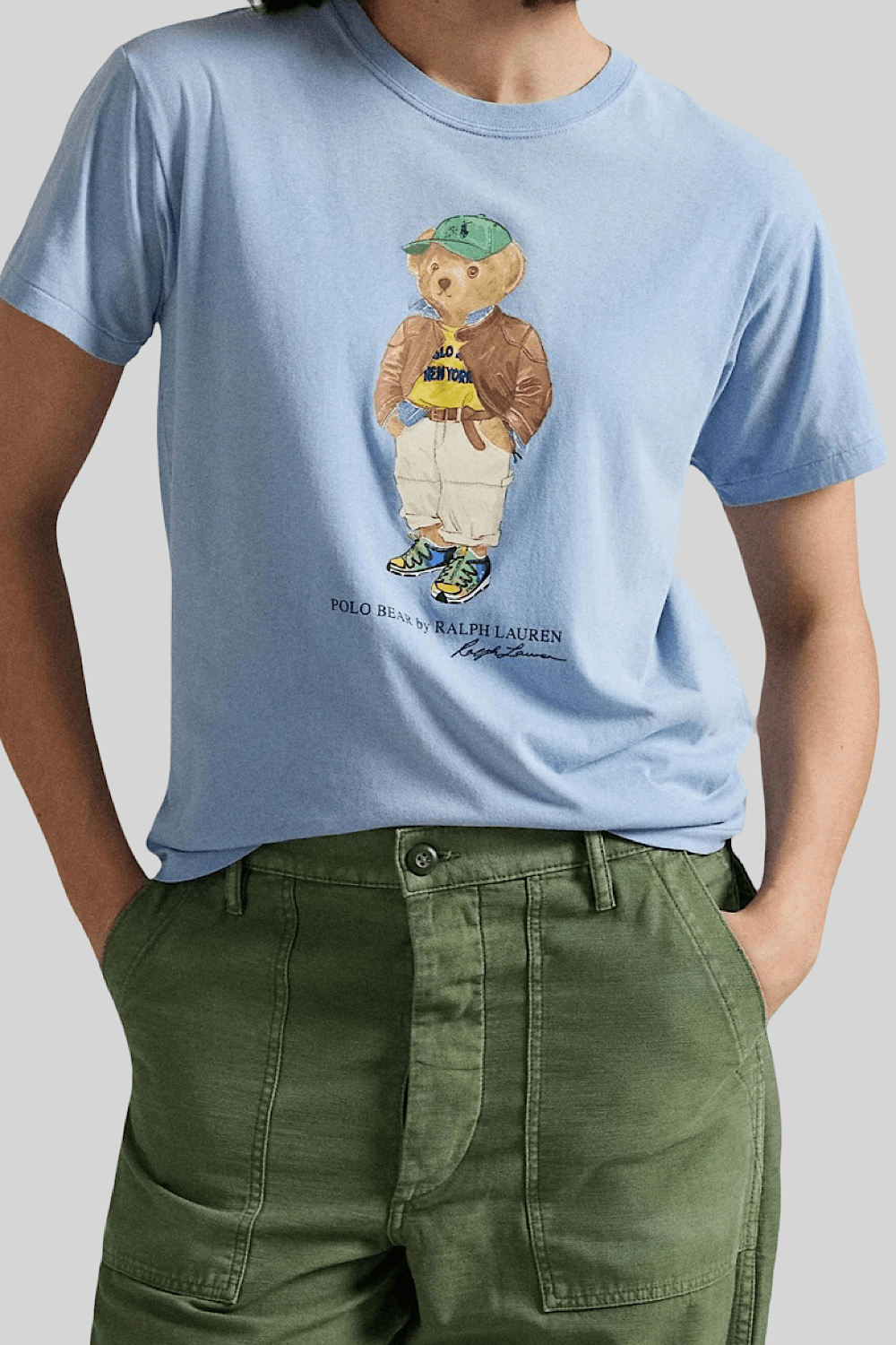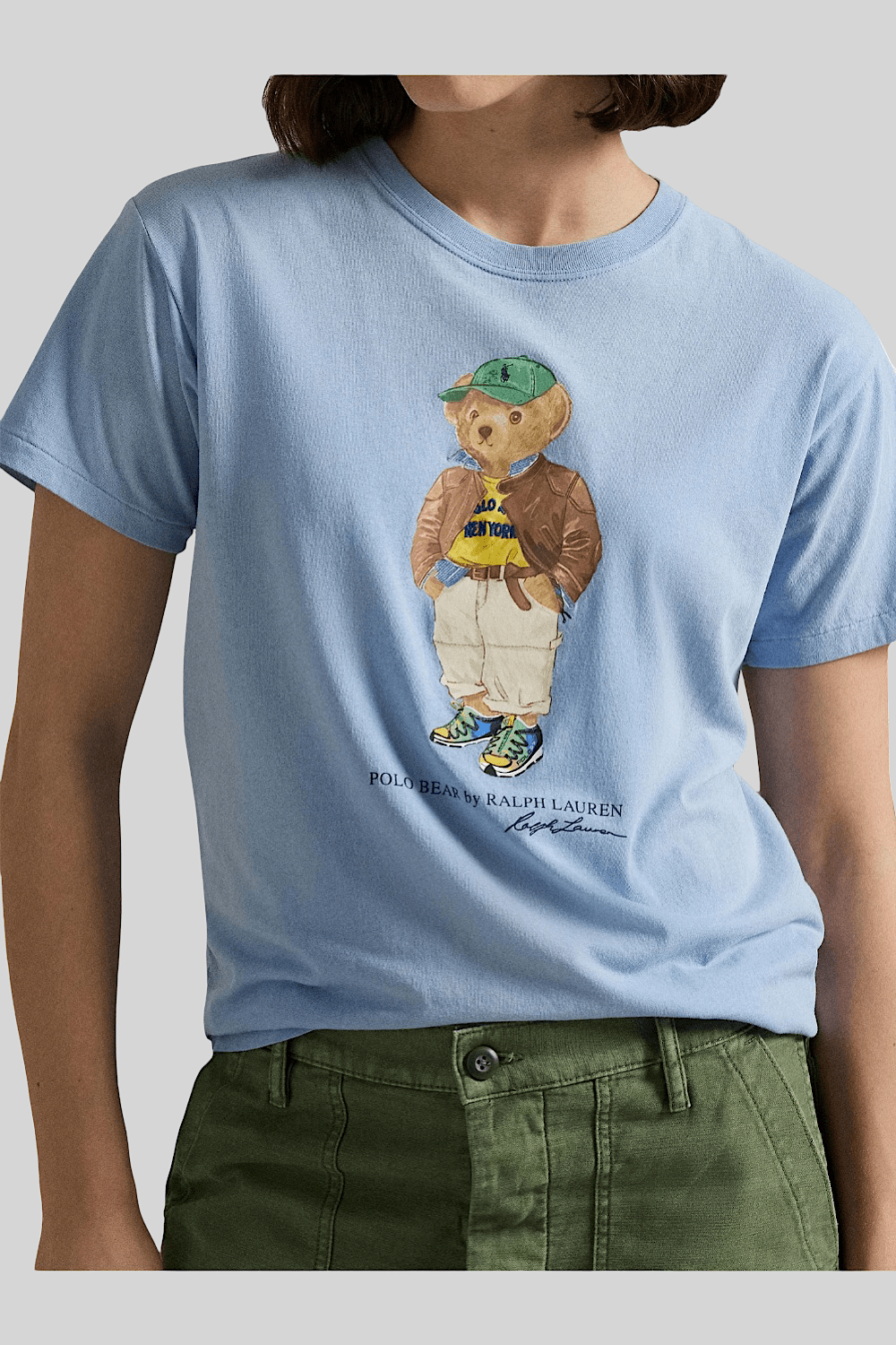 - Γραφικό Polo Bear, "Polo Bear by Ralph Lauren" και "Ralph Lauren" υπογραφή τυπωμένο και κεντημένο στο μπροστινό μέρος