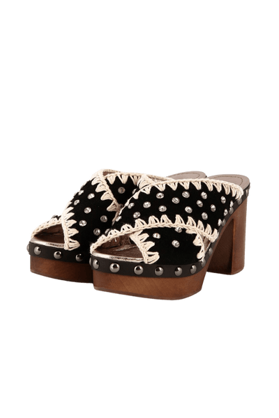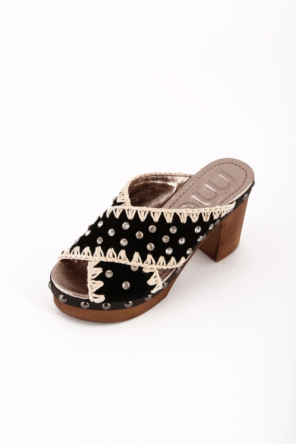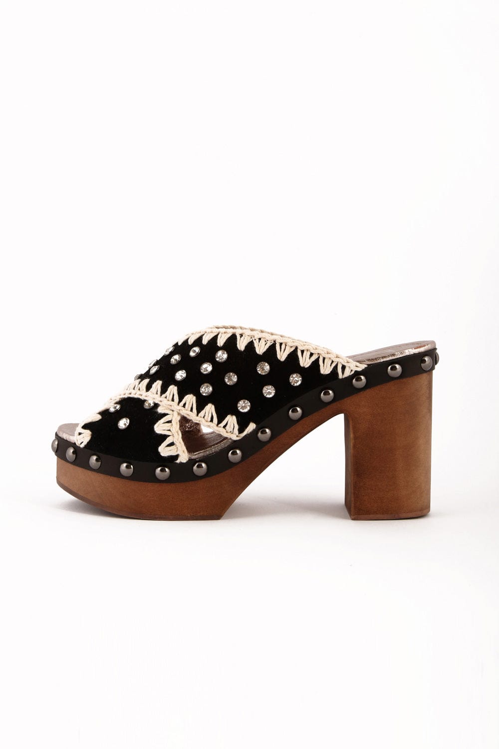 Κανονική τιμή €239,00 Εκπτωτική τιμή €83,70 έκπτωση 65%- Η εταιρεία MOU λανσάρει τα παπούτσια clogs, κατηγορίας σαμπό.Η πολύ ελαφριά ξύλινη πλατφόρμα και το τακούνι έχουν έρθει ξανά στην μόδα