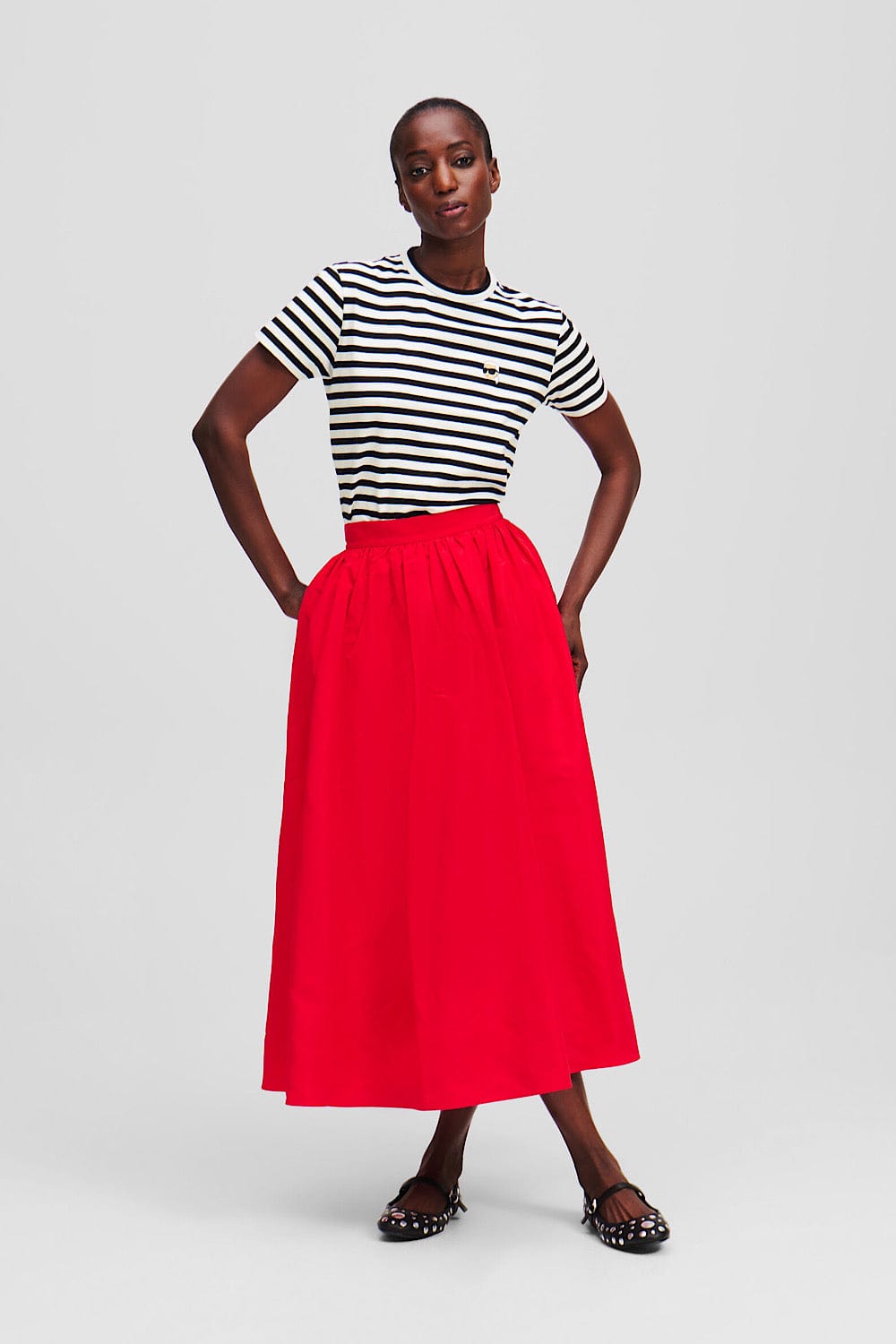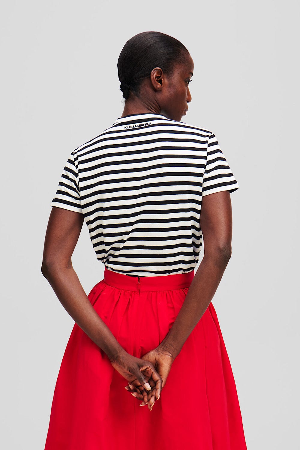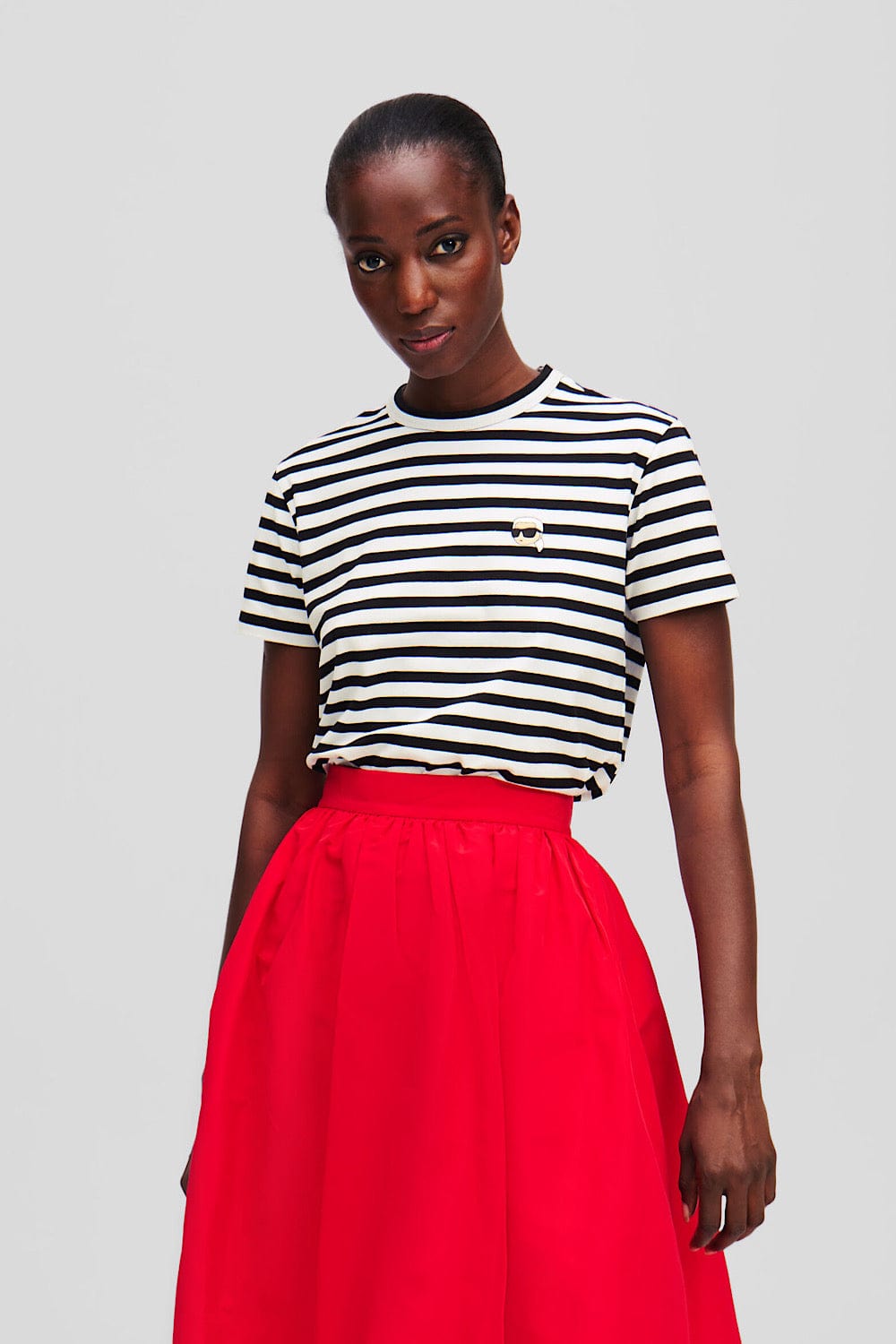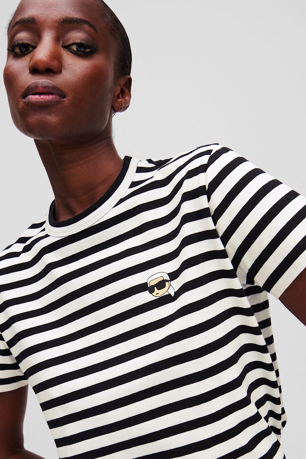 Karl Lagerfeld Ikon Stripe Boxy T-Shirt Μαύρο/Άσπρο A1W17099 1VE