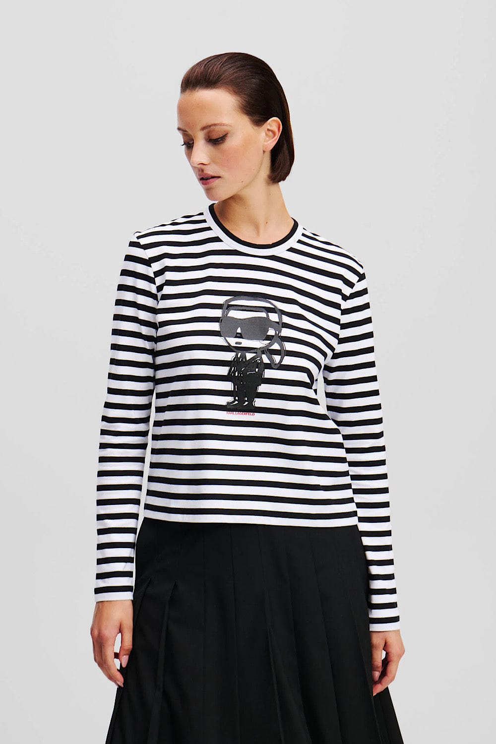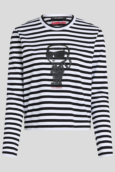Karl Lagerfeld Ikon Stripe Μακρυμάνικη Μπλούζα Μαύρο/Άσπρο A1W17137 1VE