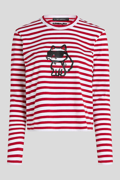 Karl Lagerfeld Ikon Stripe Μακρυμάνικη Μπλούζα Κόκκινη/Άσπρη A1W17137 1VF