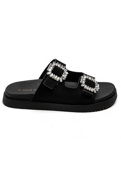 Ideal Shoes Μπαλαρίνες με Στρας Μαύρες 2216