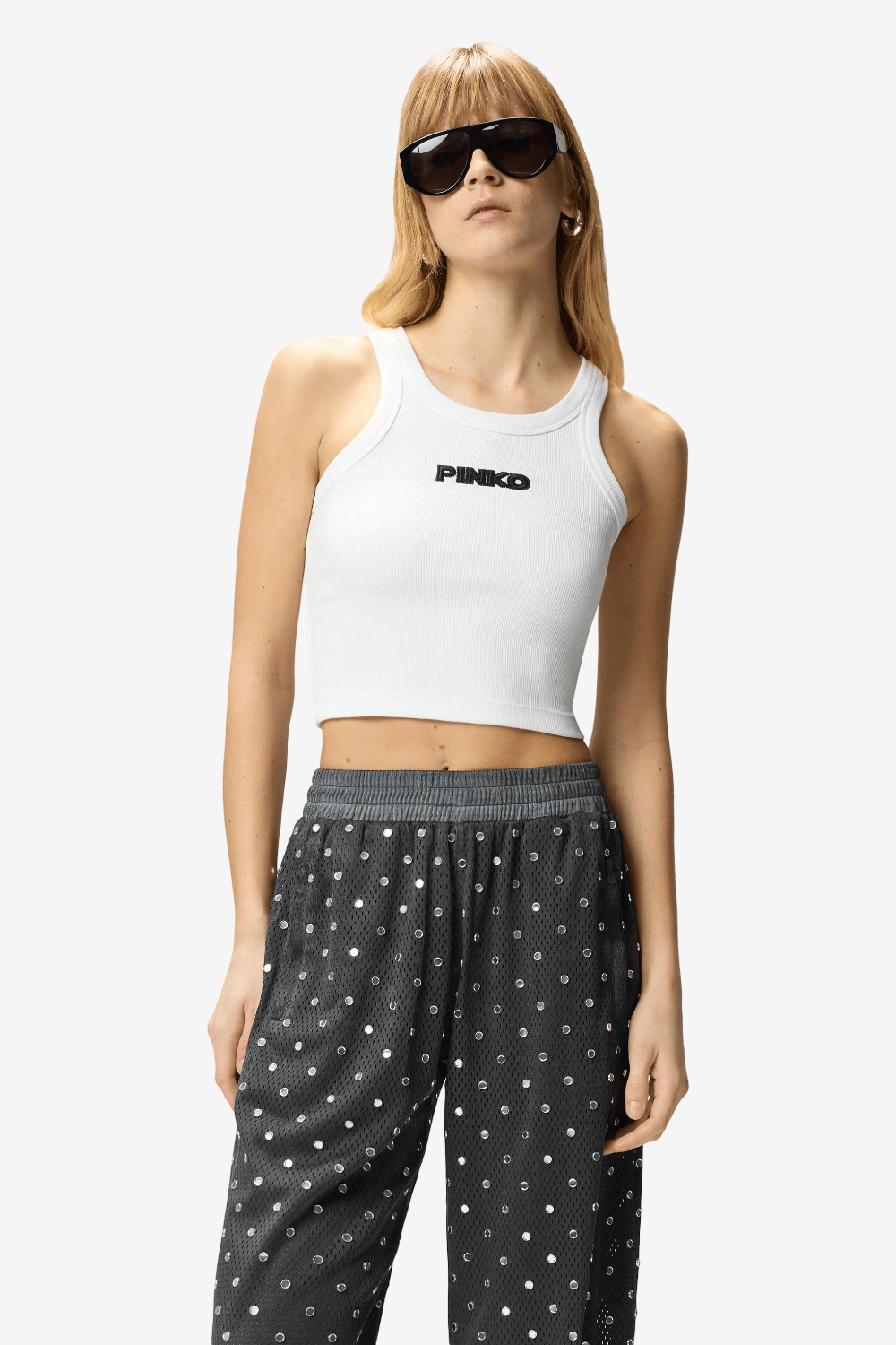 Pinko Bloody Mary Cropped Top με Λογότυπο Άσπρο 107301 A3H6 Z14