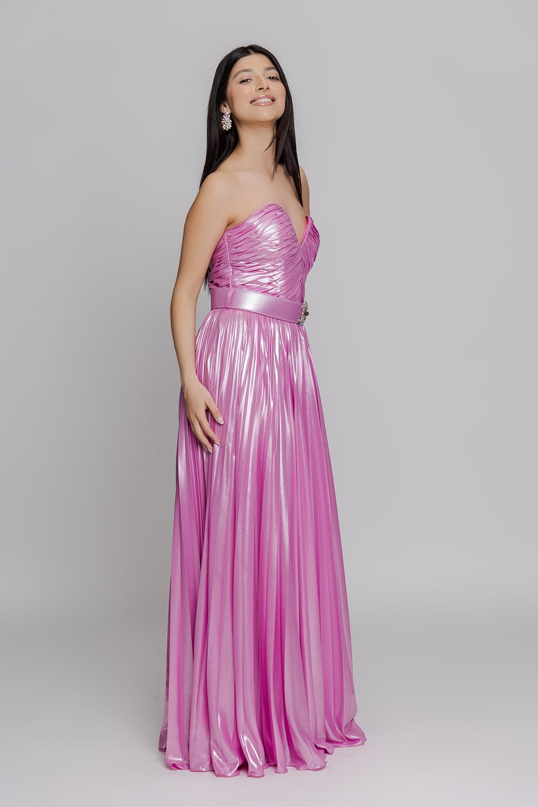 Tassos Mitropoulos Maxi Πλισέ Φόρεμα Ροζ Μεταλιζέ TM31328