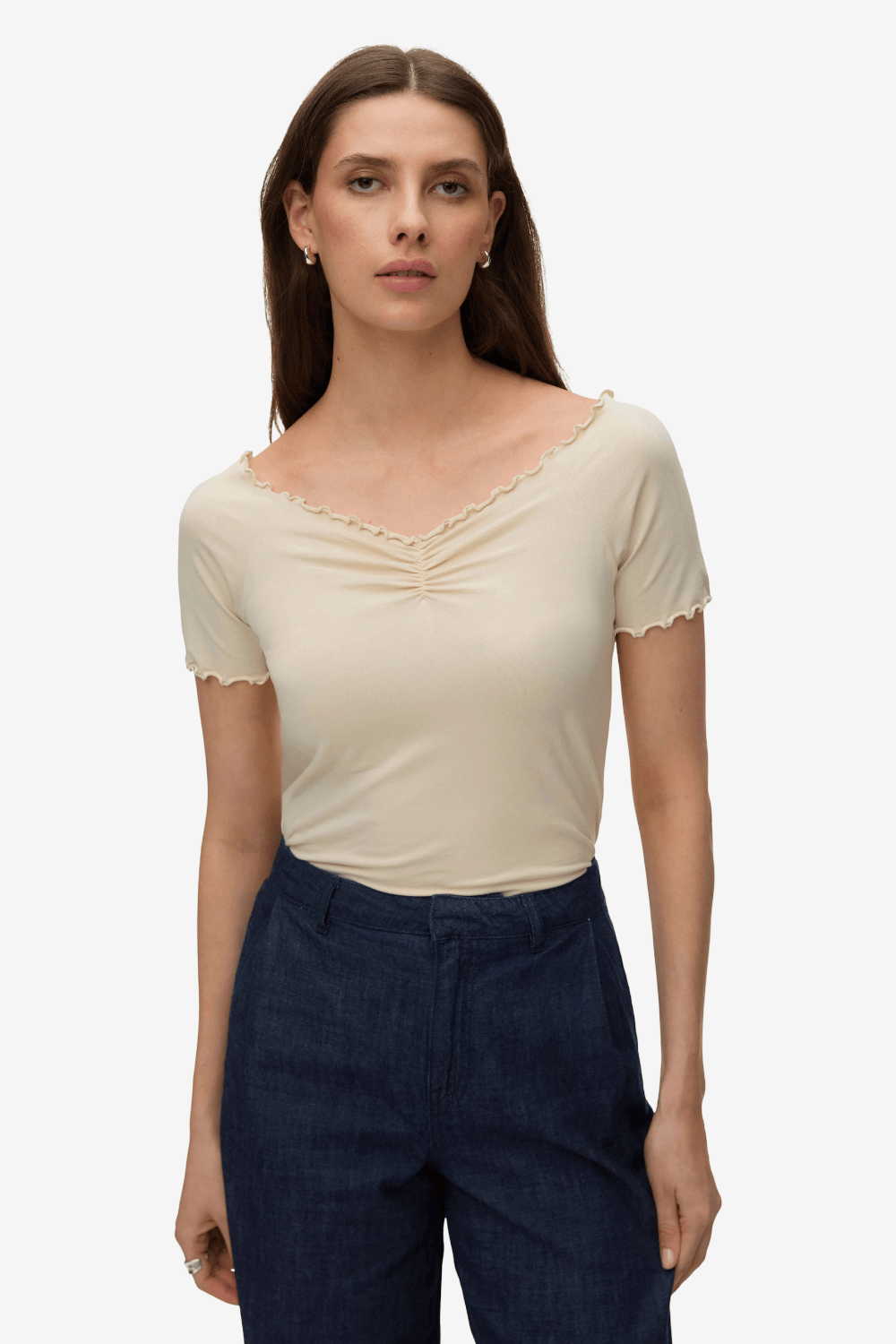 Vero Moda Aware Myra Κοντομάνικη Μπλούζα Μπεζ 10342729