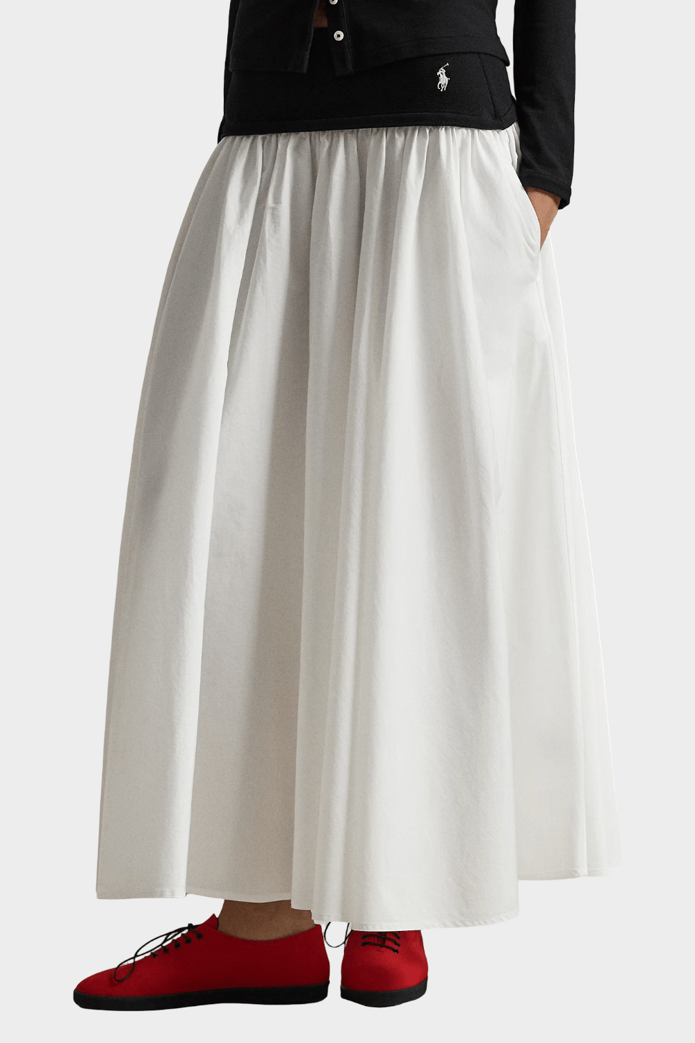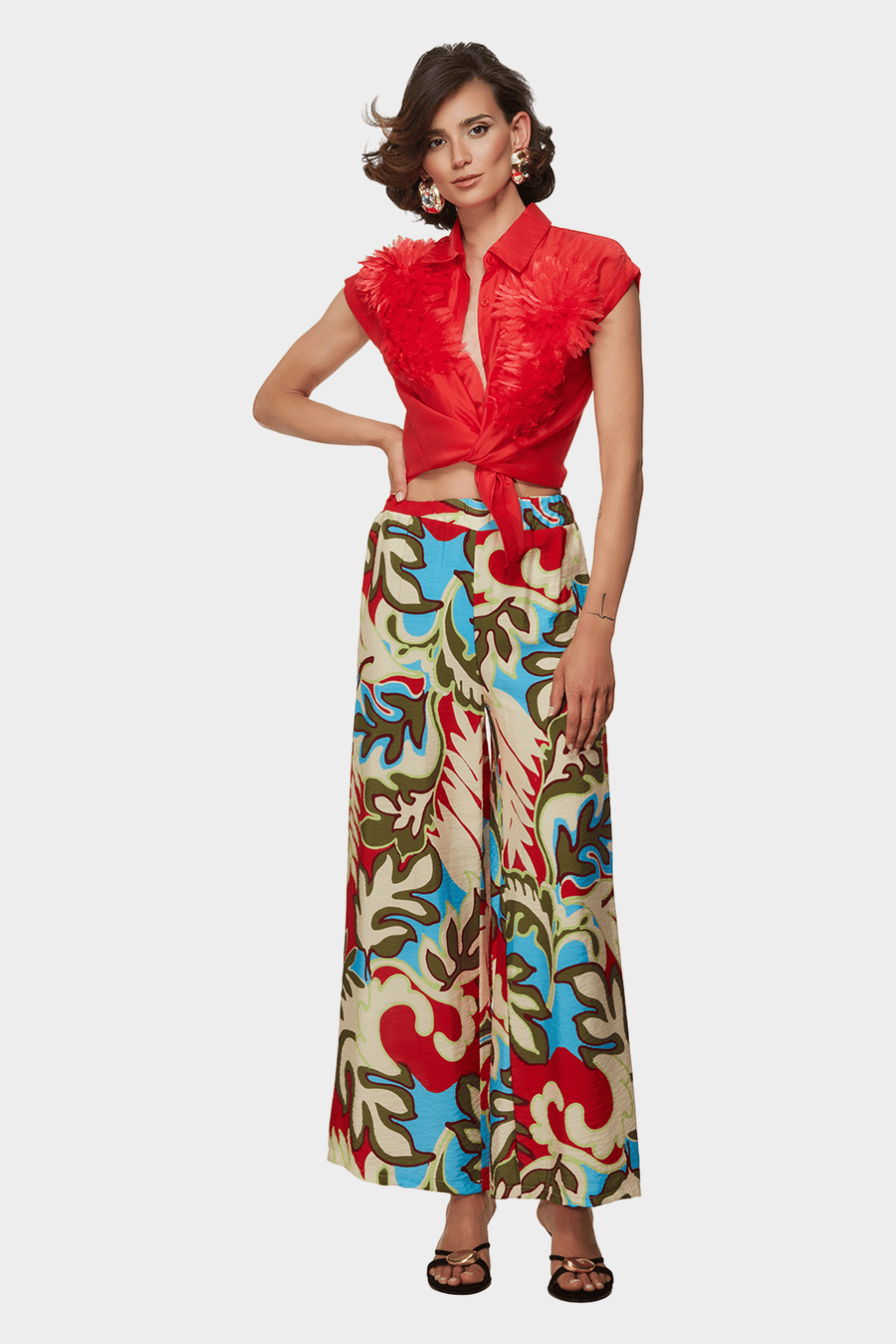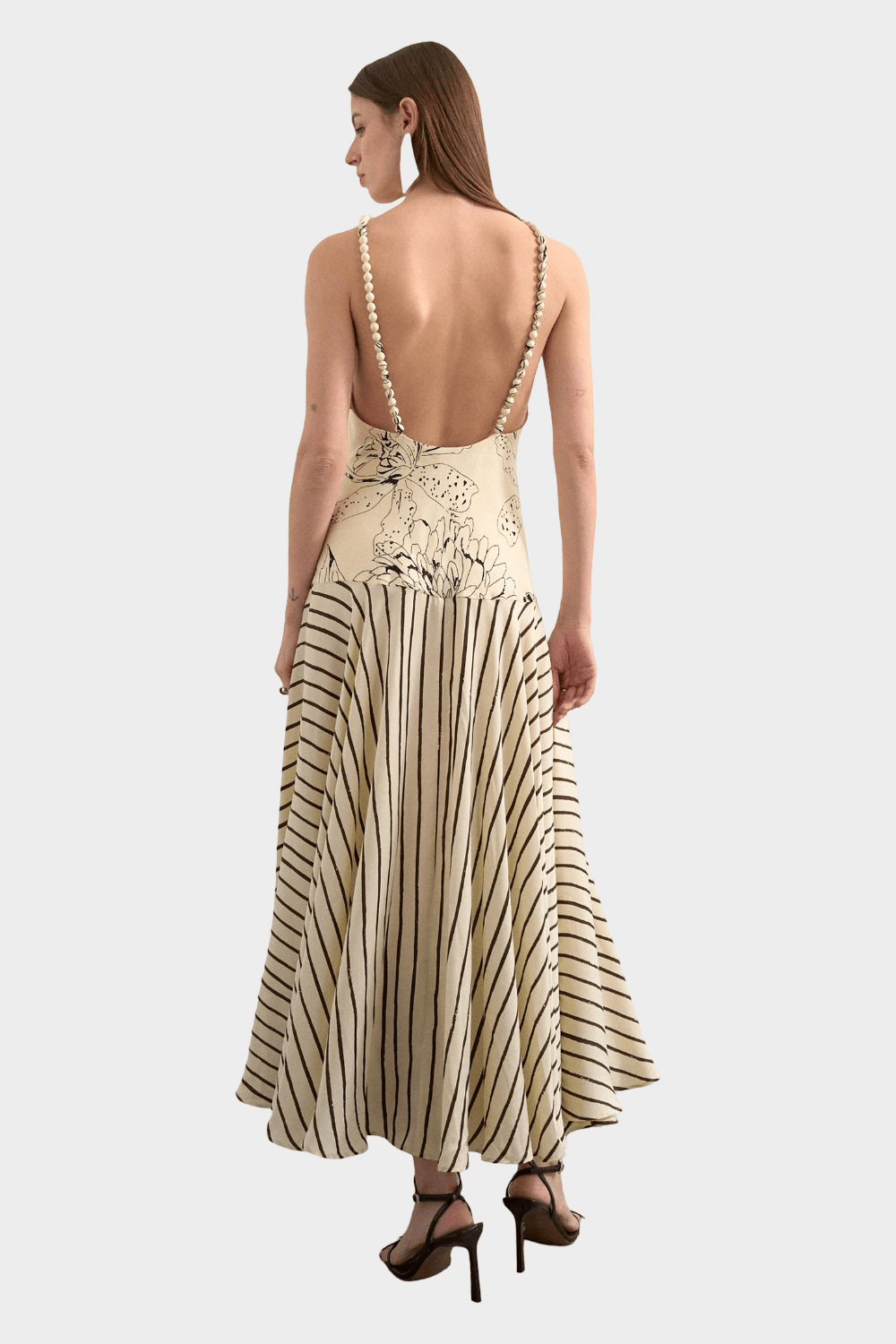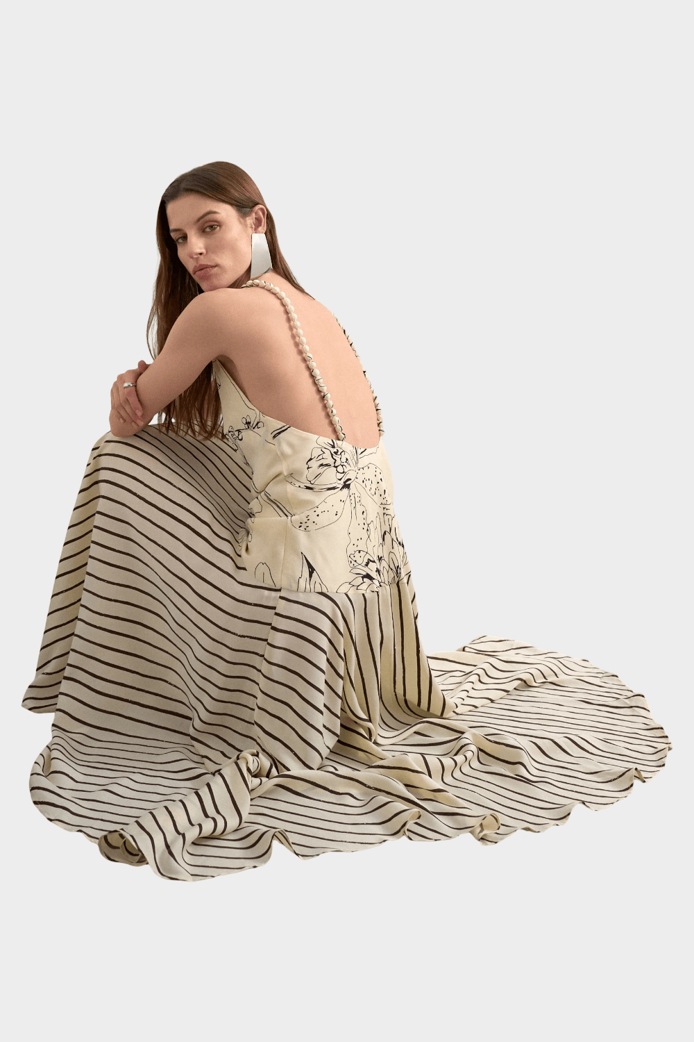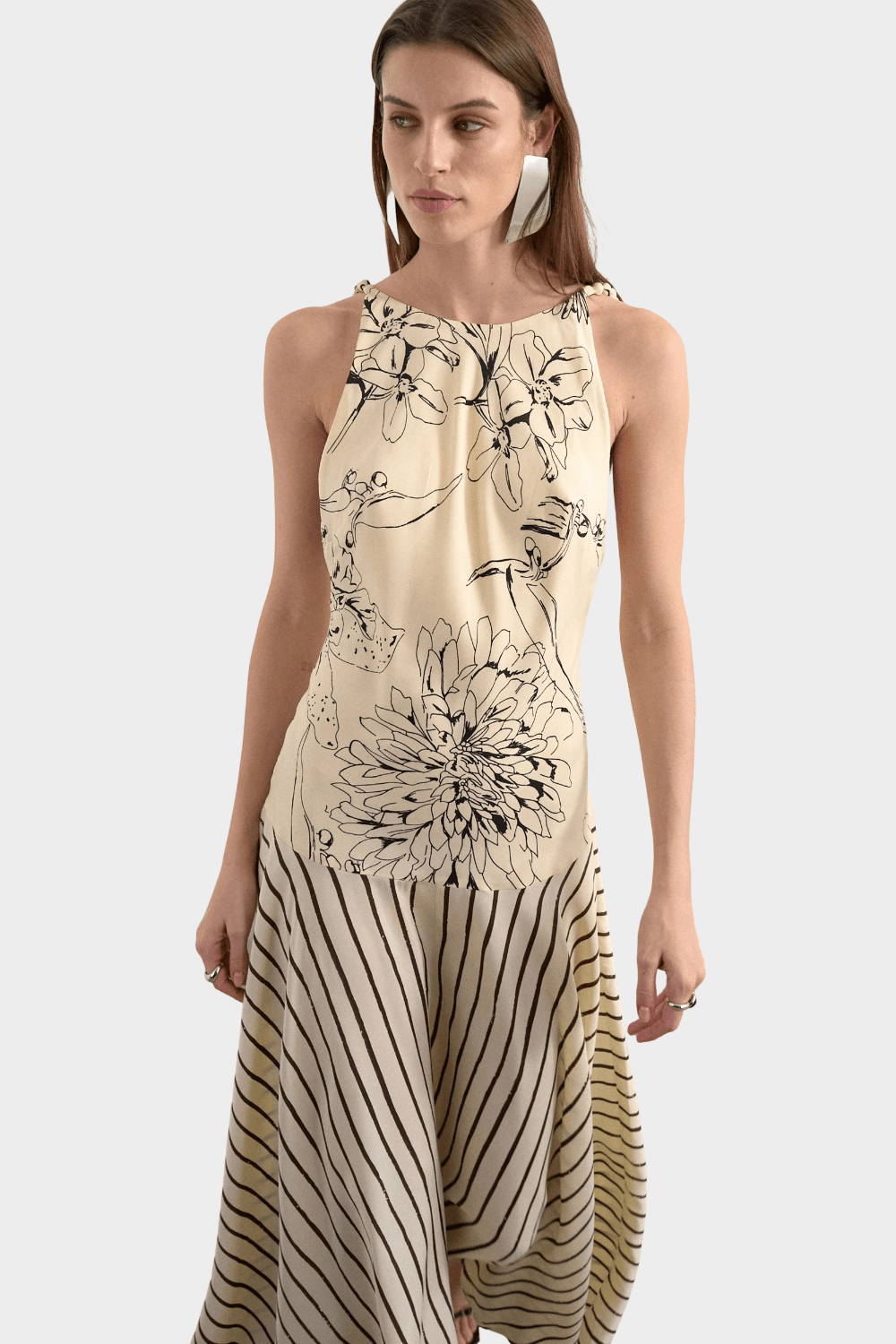 - Φλοράλ μπούστο σε αντίθεση και ριγέ φούστα