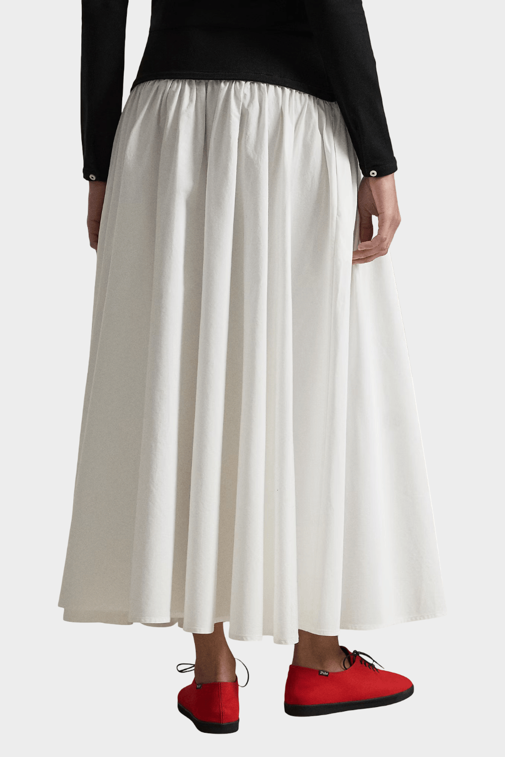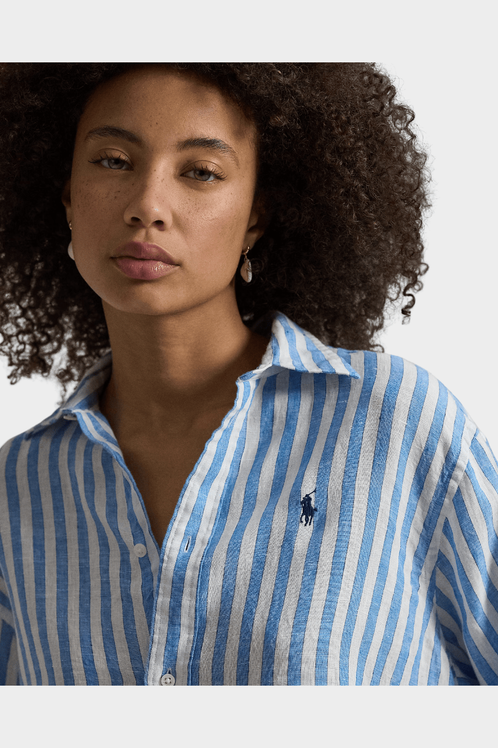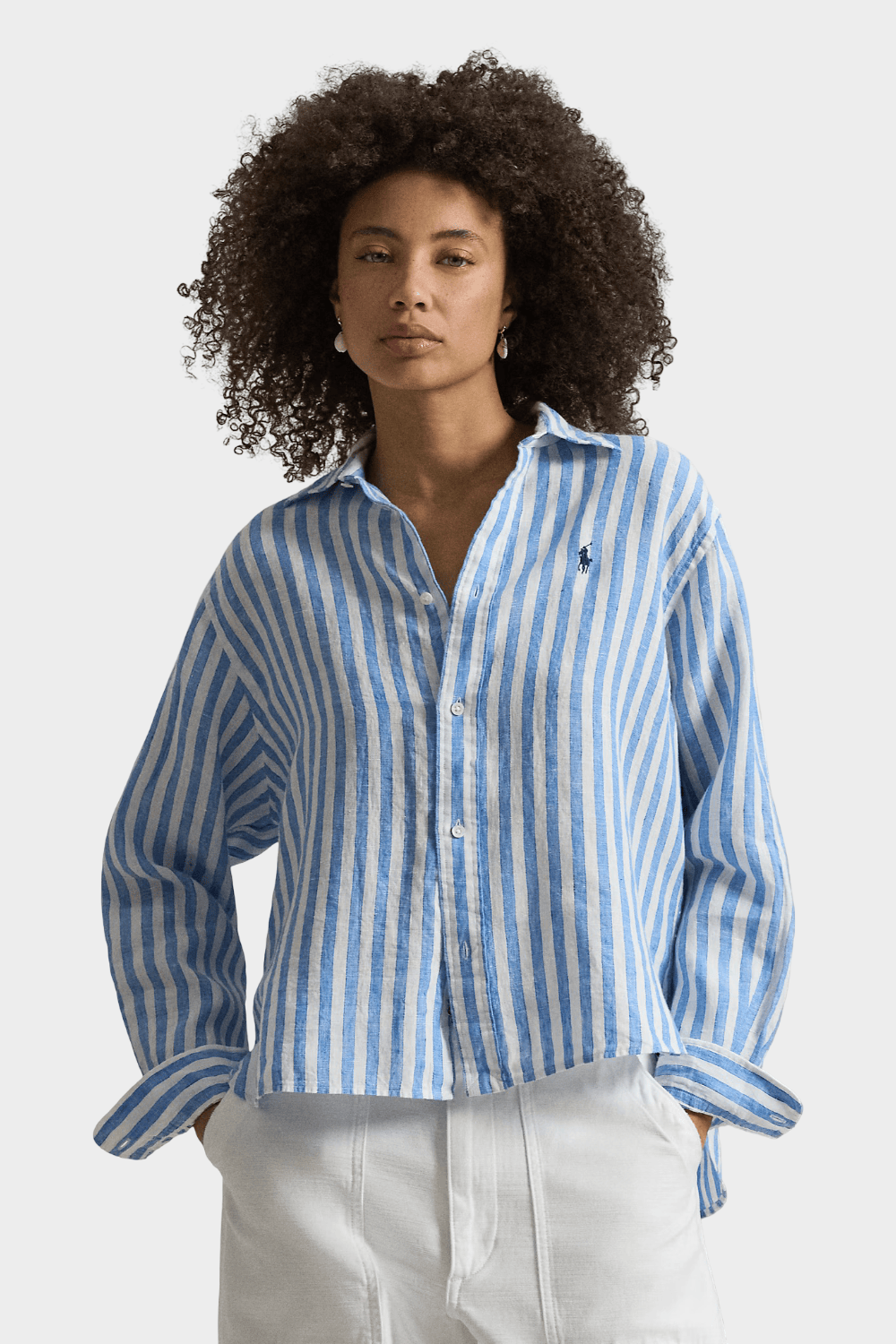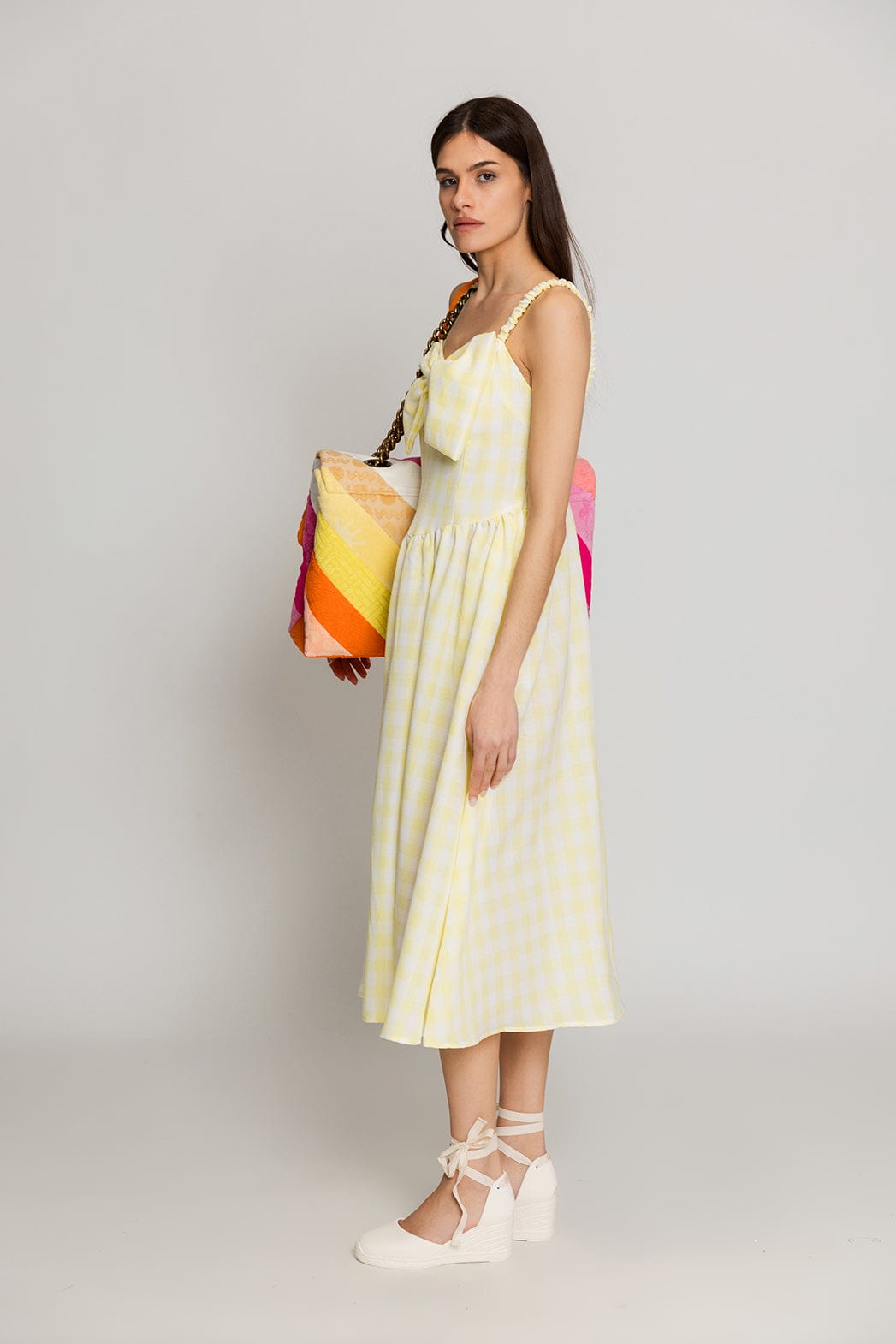 - Φλοράλ μπούστο σε αντίθεση και ριγέ φούστα