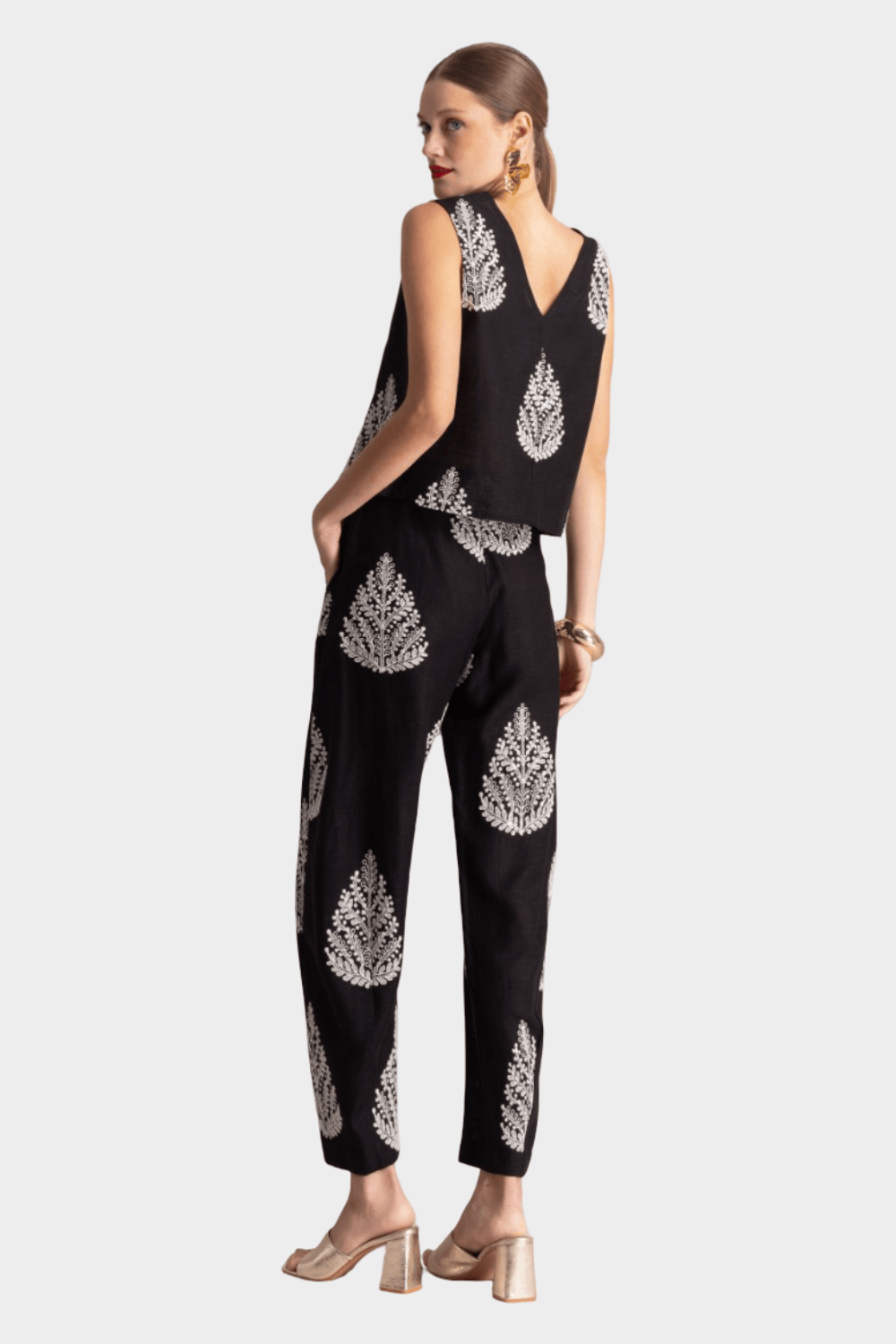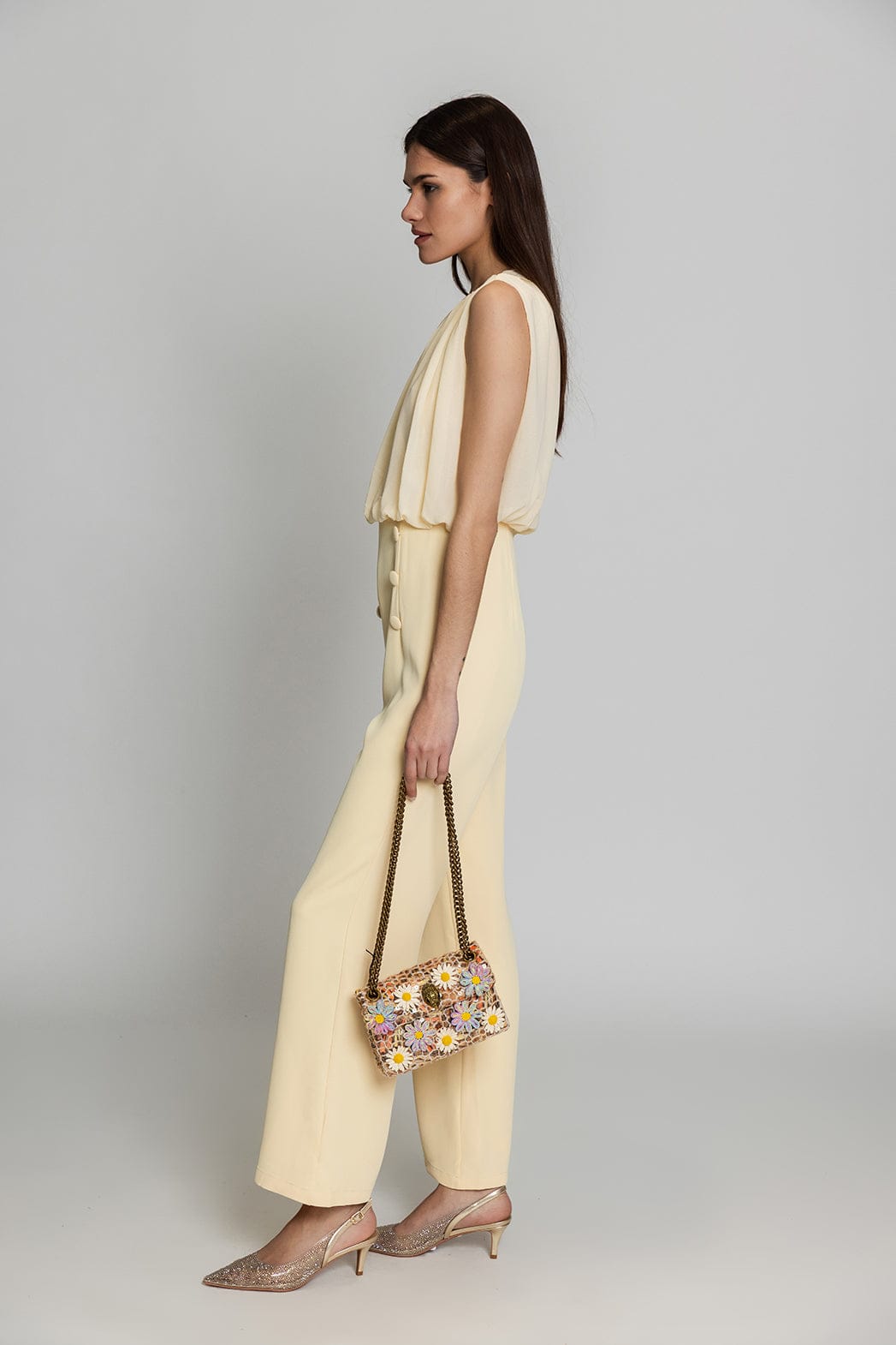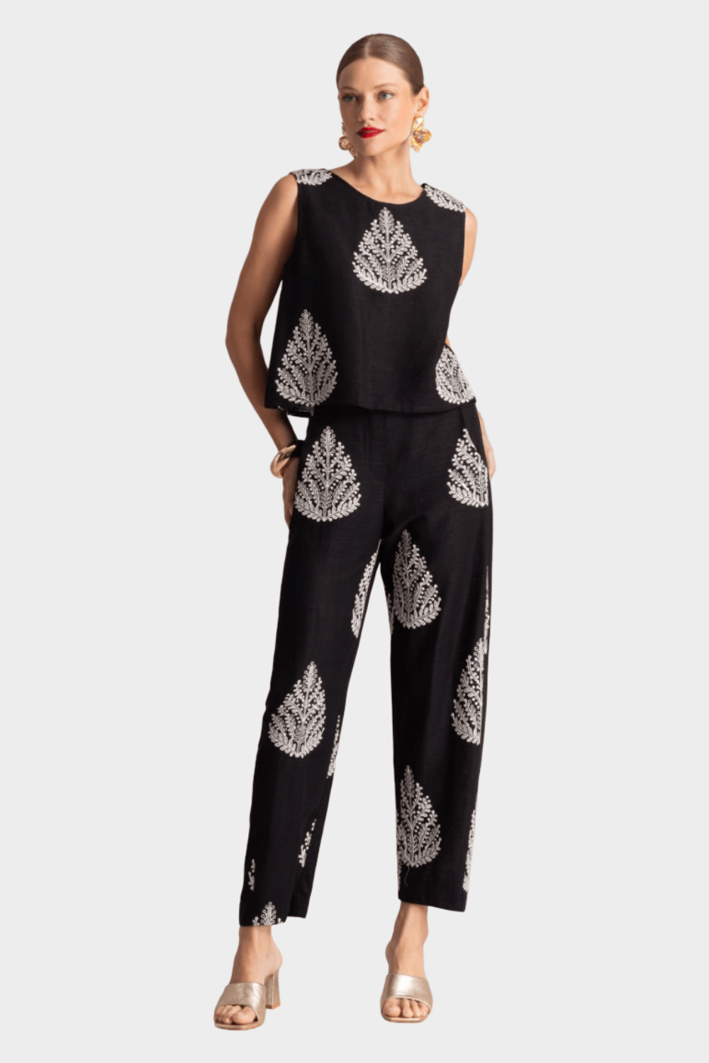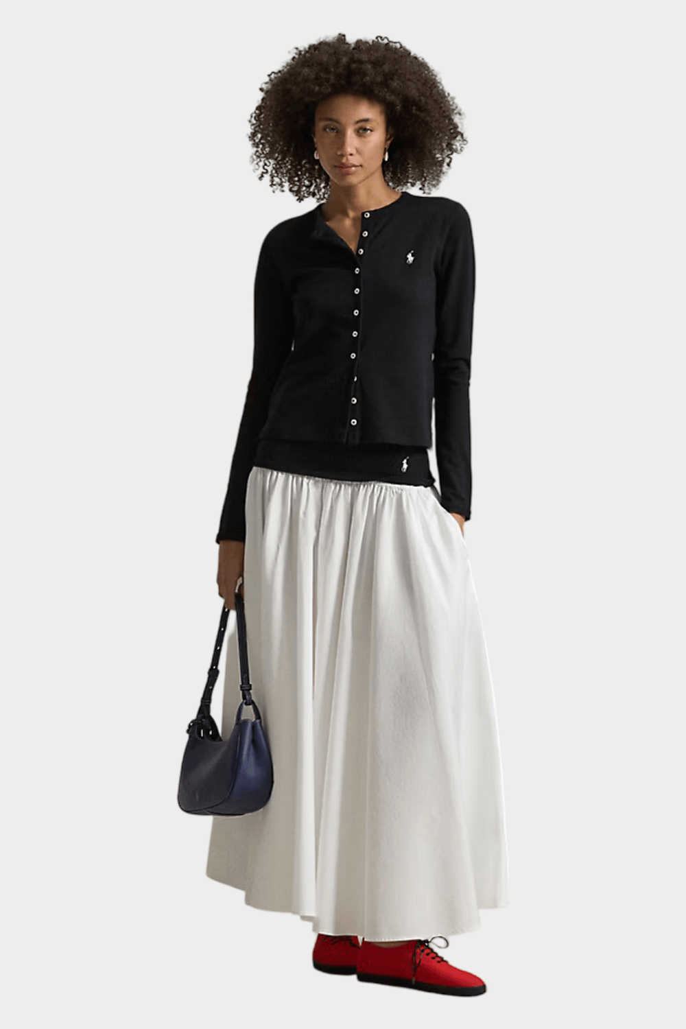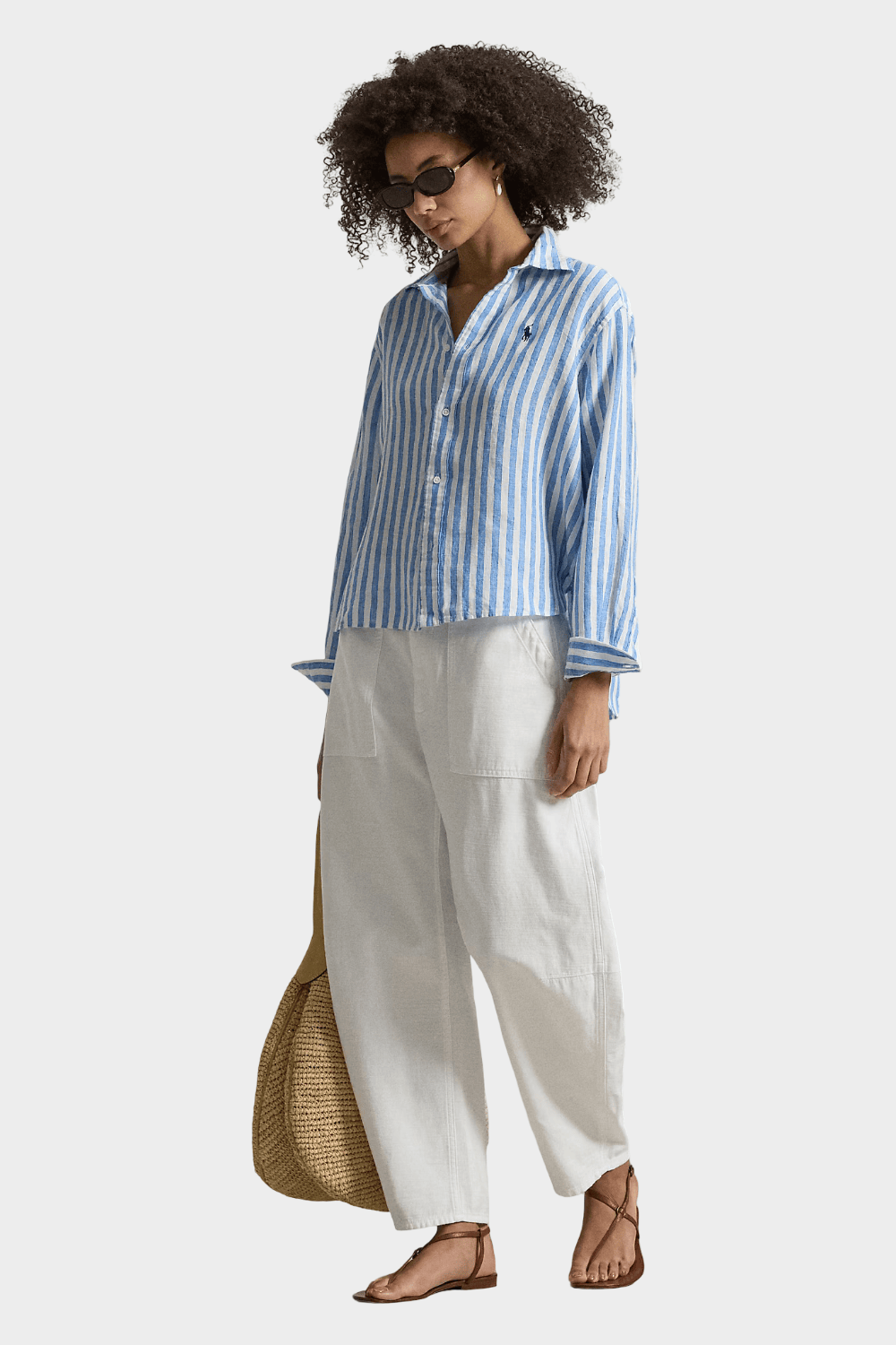 - Φλοράλ μπούστο σε αντίθεση και ριγέ φούστα
