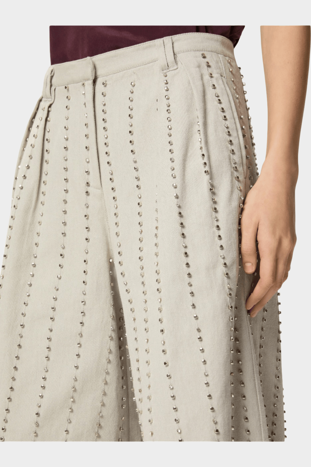 - Σχέδιο με ρίγες διακοσμημένο με μικρά μεταλλικά στοιχεία, κεντημένα στο χέρι