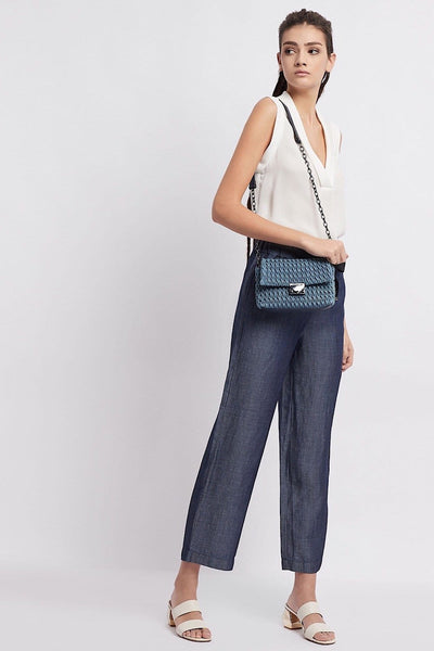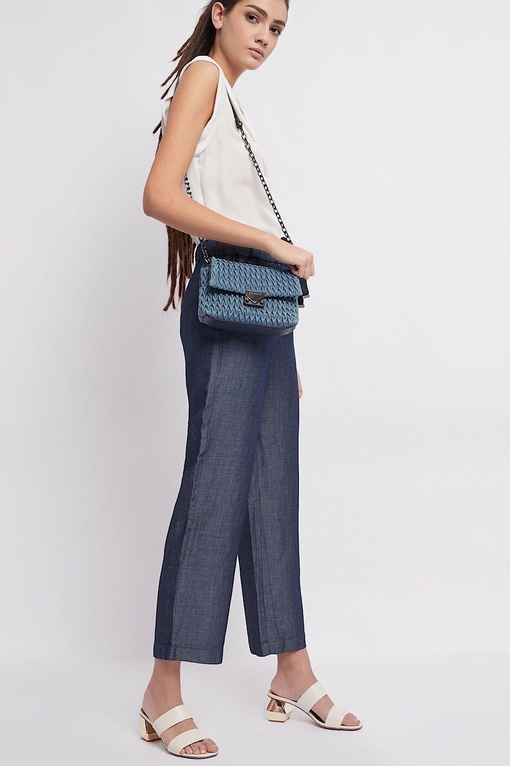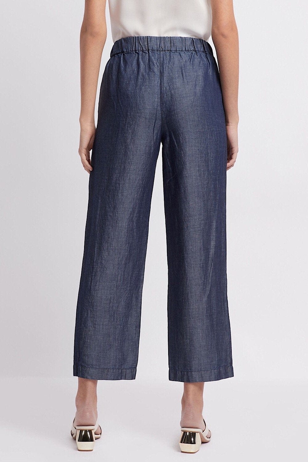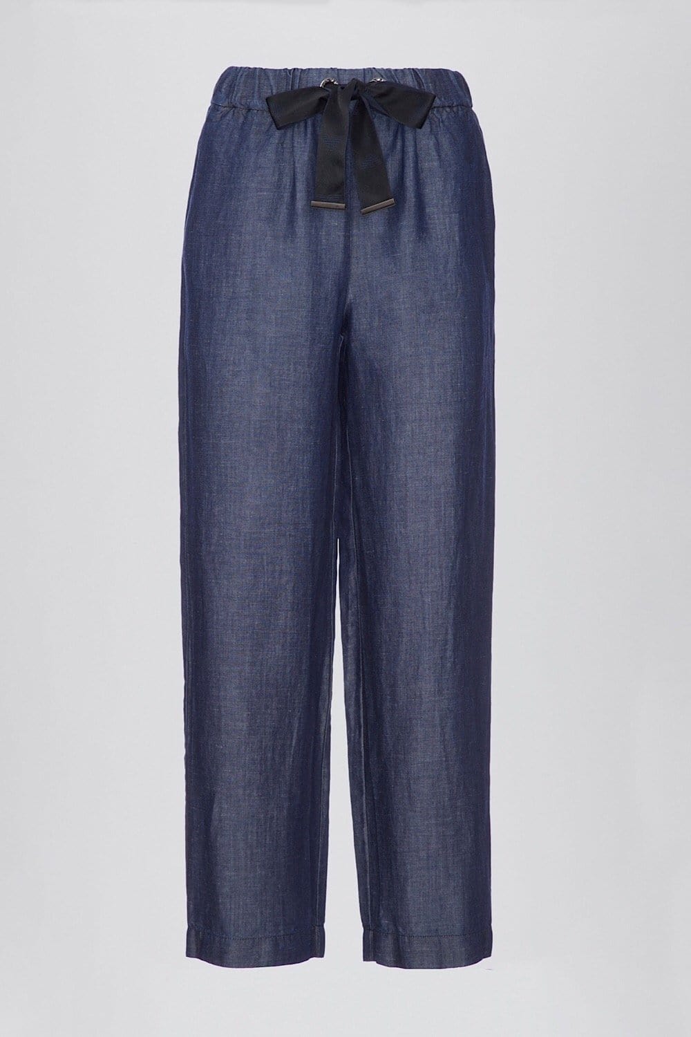 Regular price €195,00 Sale price €58,50 Sale 70%Very light and light pants for spring made of linen fabric. Cropped pants in blue denim color with a bow that gives femininity.