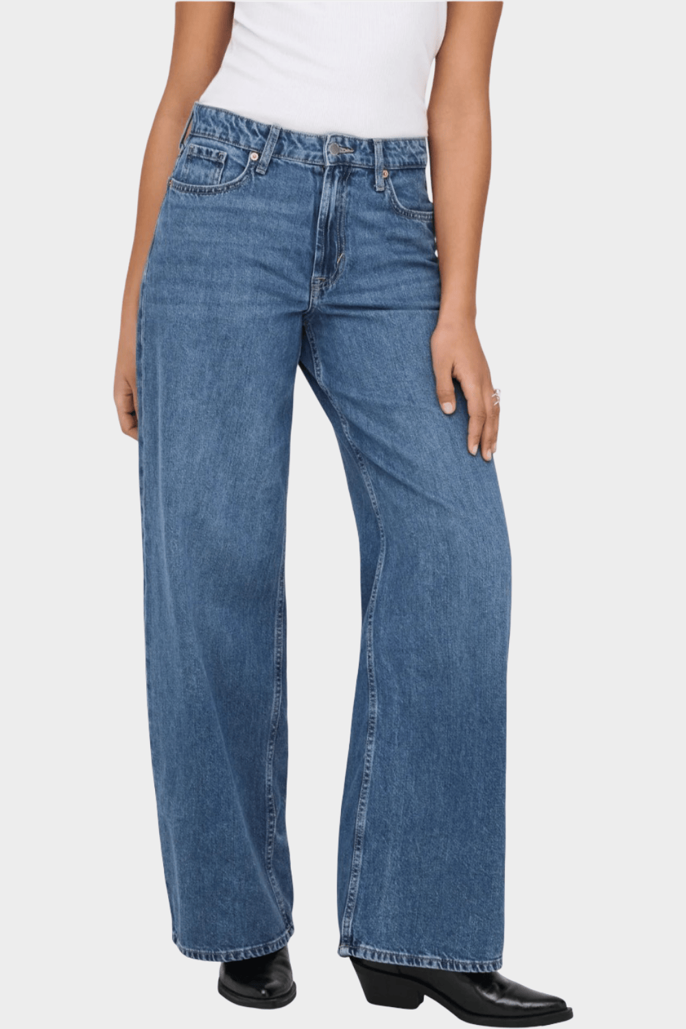 Only Silky Ψηλόμεσο Φαρδύ Παντελόνι Τζιν Μπλε 15369052