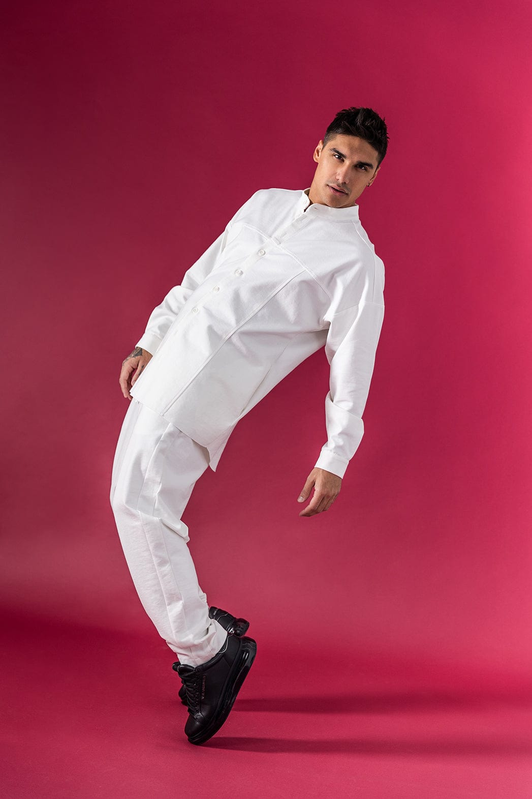 - The model is 1.83cm tall, weighs 80kg and wears a size 52