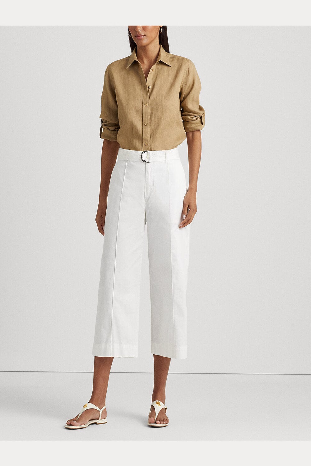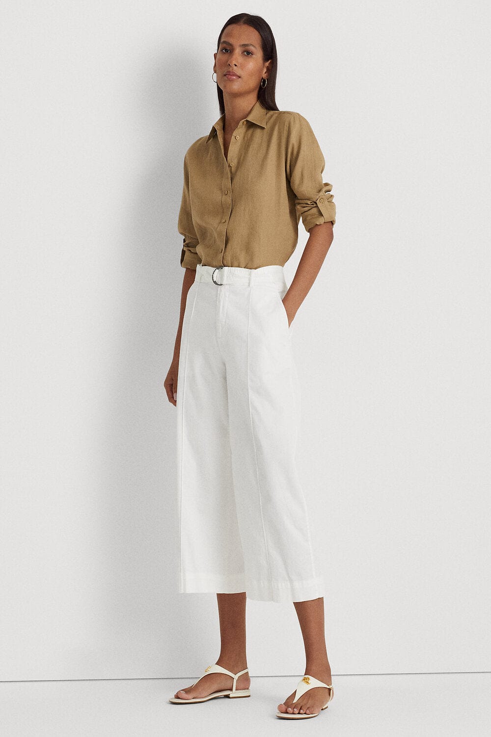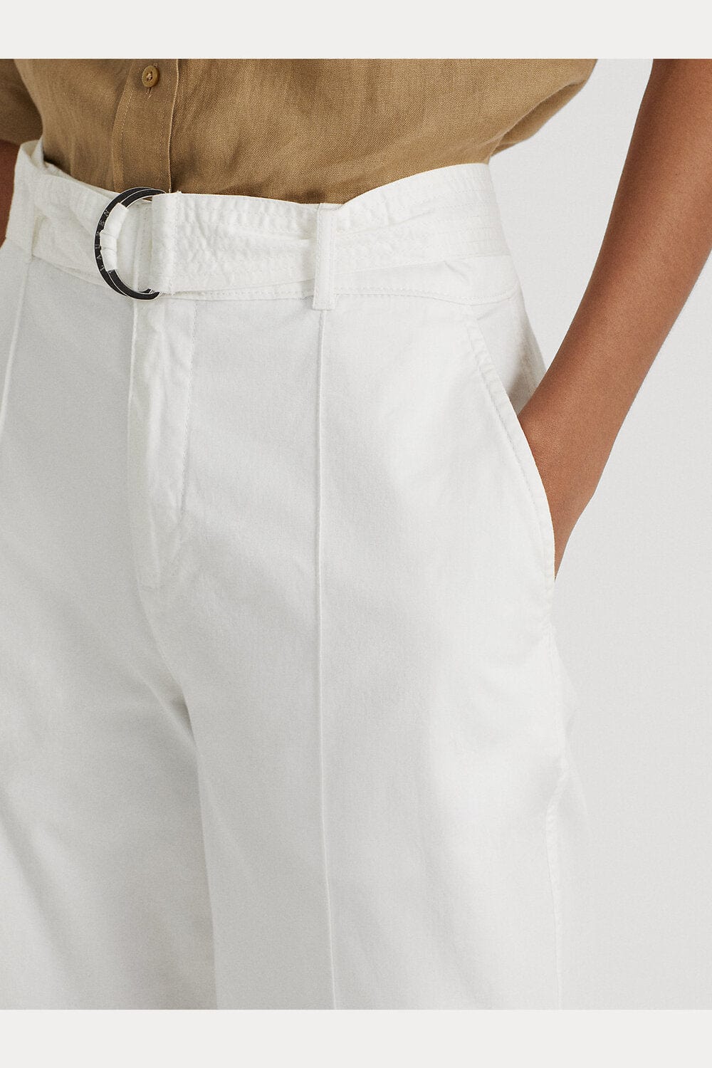 Lauren Ralph Lauren Micro-Sanded Belted Wide-Leg White Trousers 200876606006