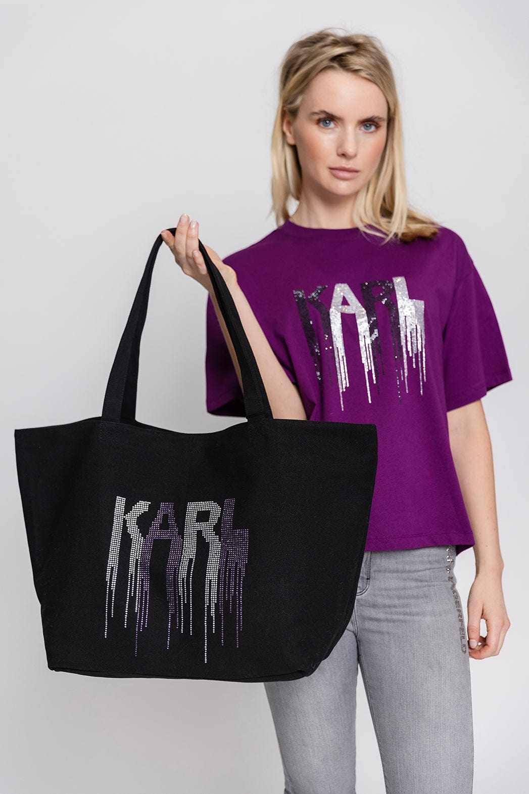The legendary designer of Chanel and Fendi and fashion icon Karl Lagerfeld, signs his own eponymous line of clothes and accessories, always with pop mood and eccentricity.