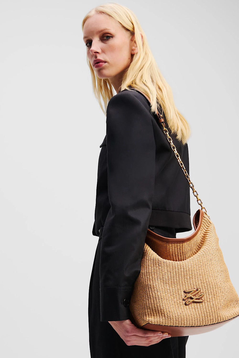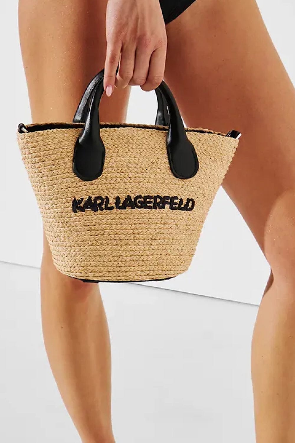 Karl Lagerfeld K/Essential Raffia Tote Bag Black 241W3027 999