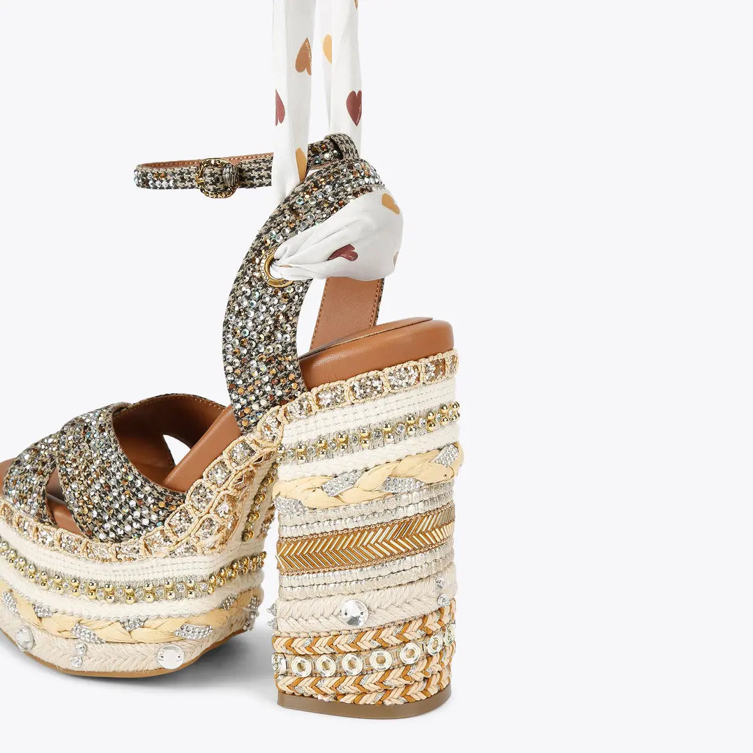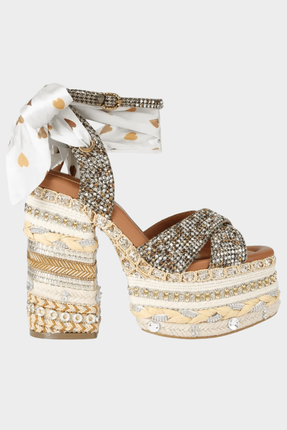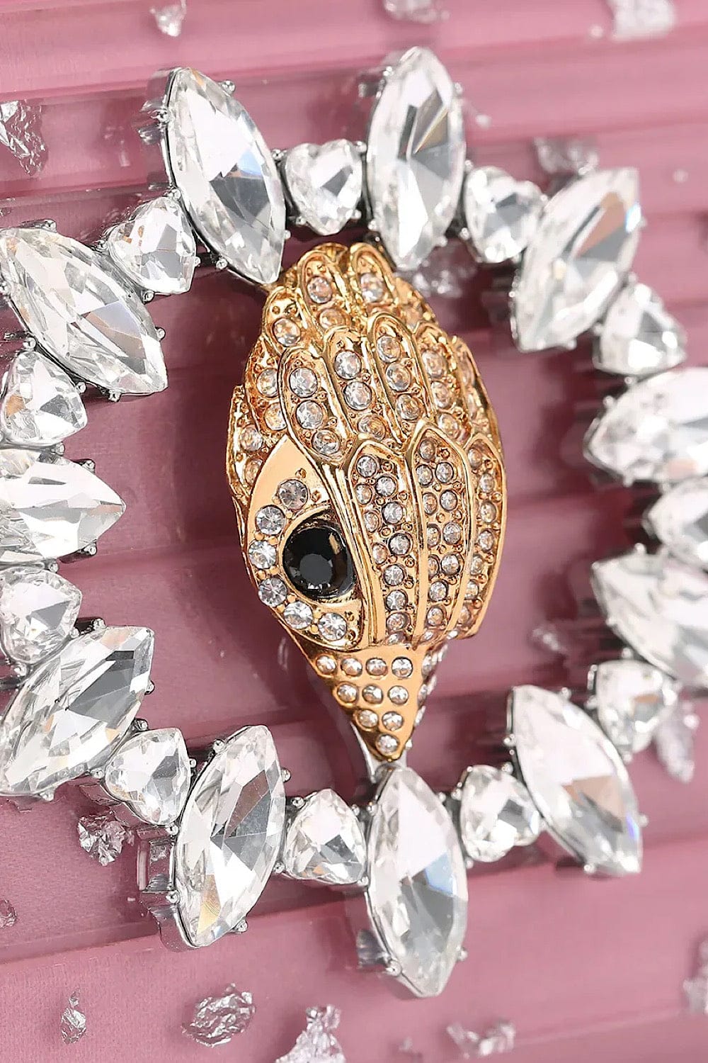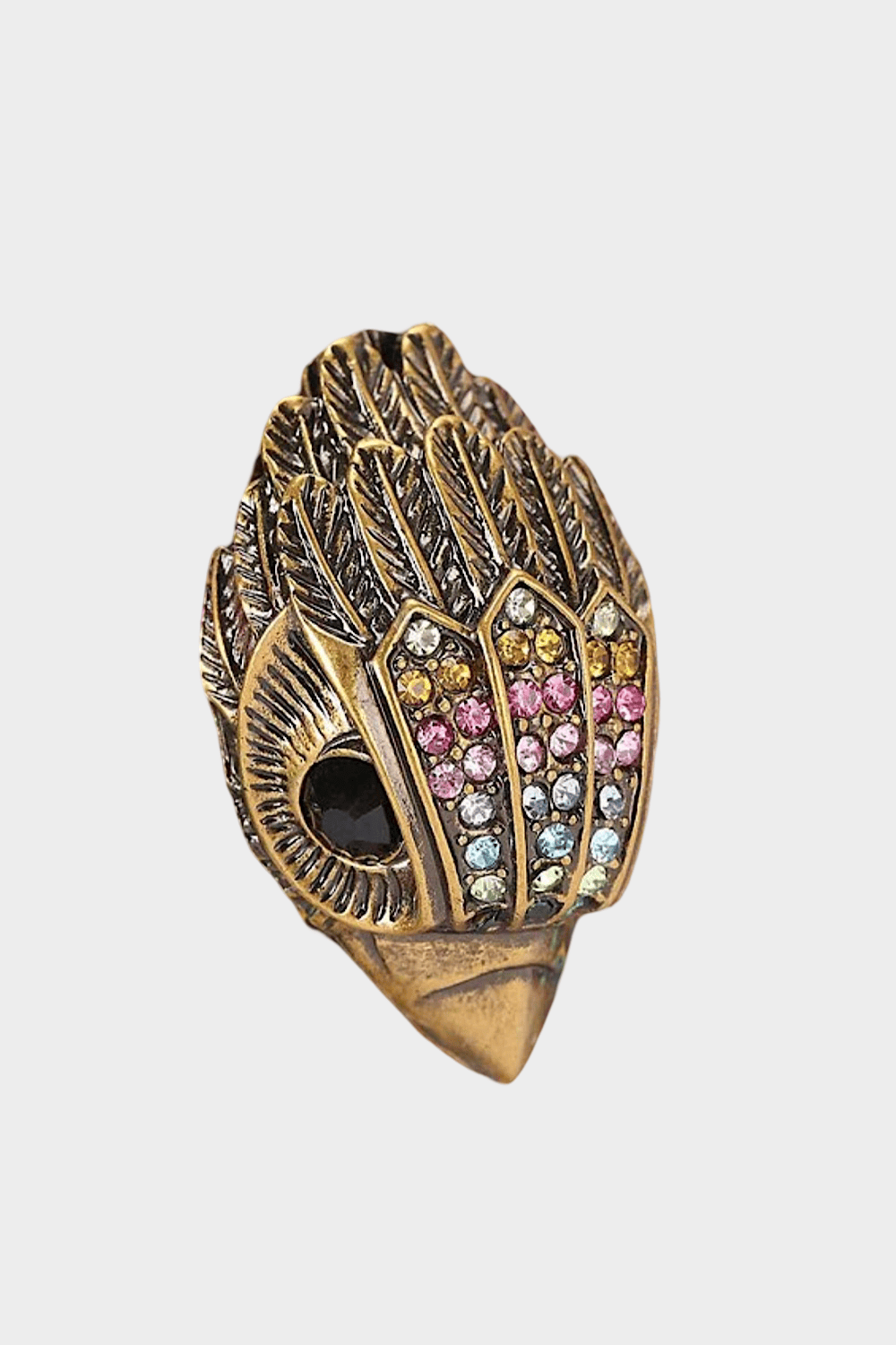 - Pointed toe with shiny brass eagle head with crystals all over the surface