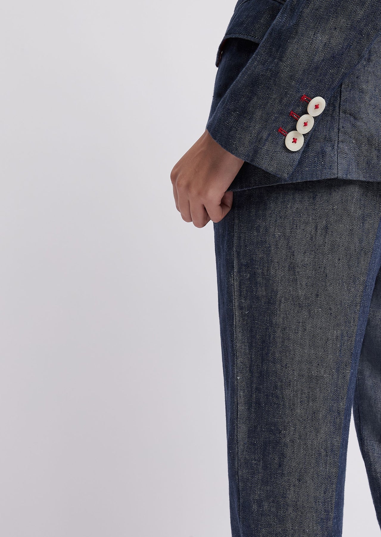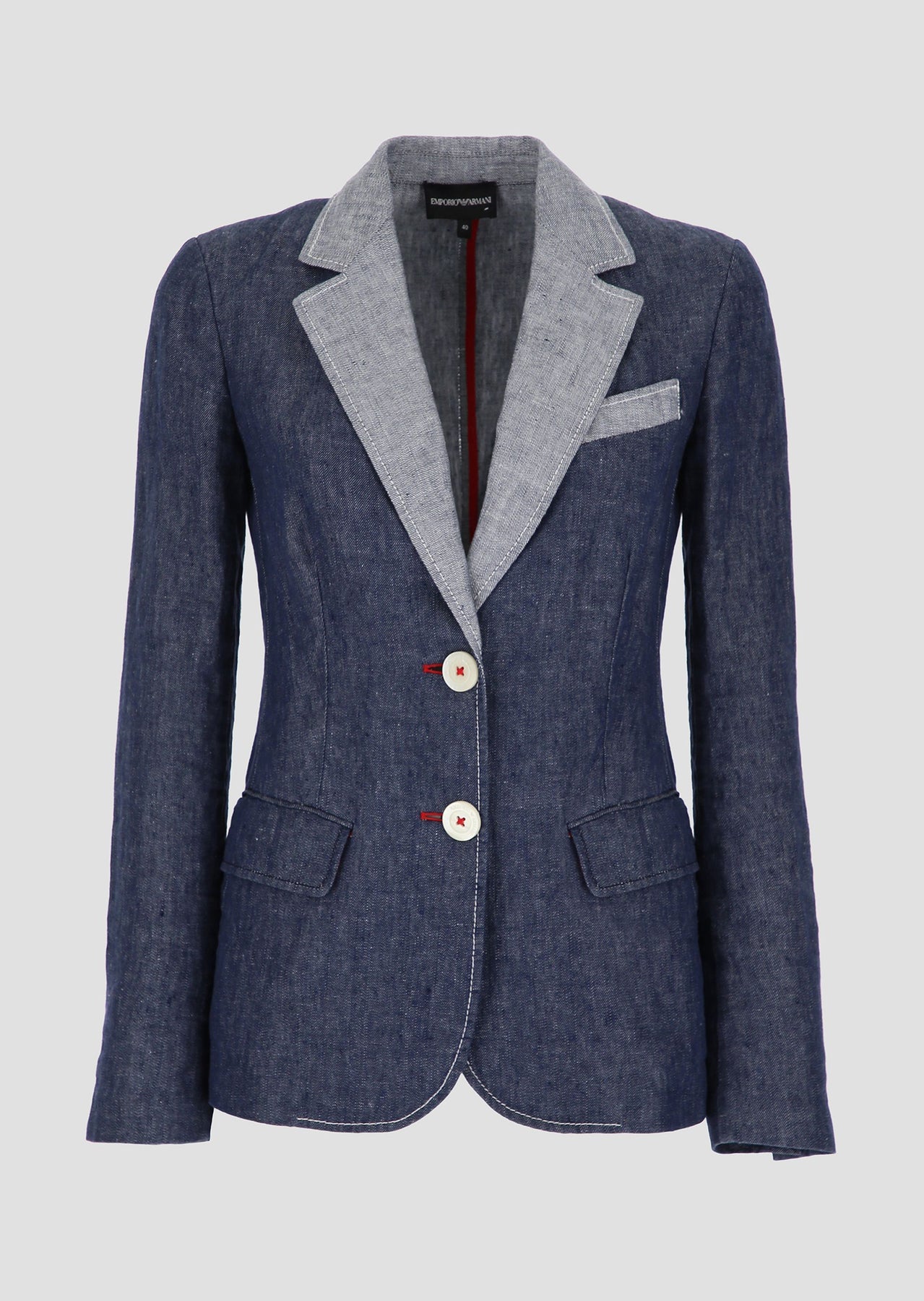 - Classic choice with modern details with this wonderful linen fabric and denim effect
