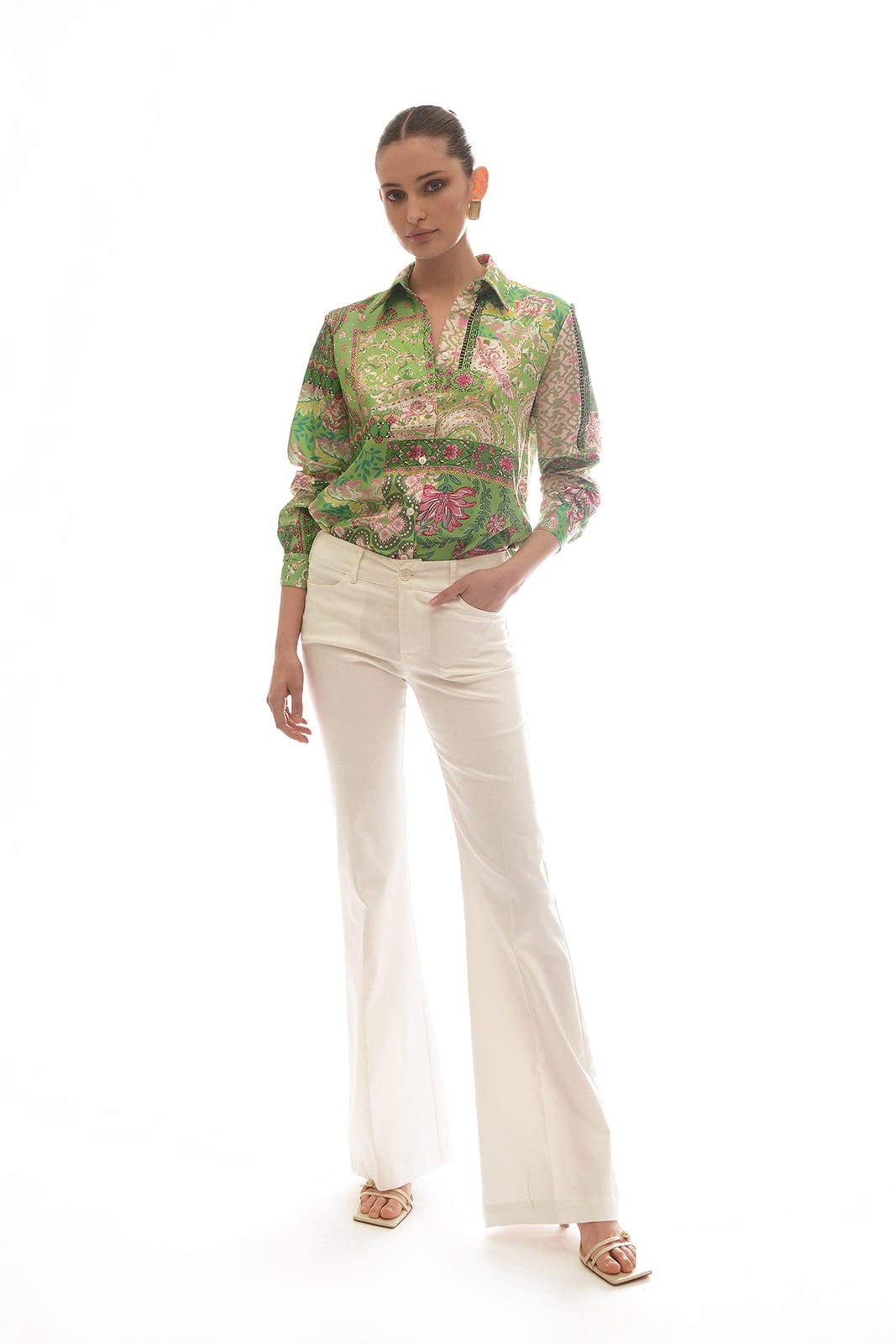 Twenty29 Blouse with Wide Sleeves and V Neck - Green 8077