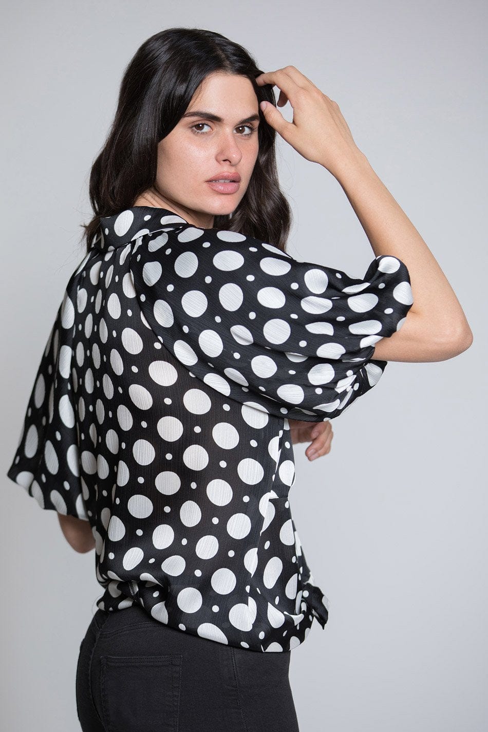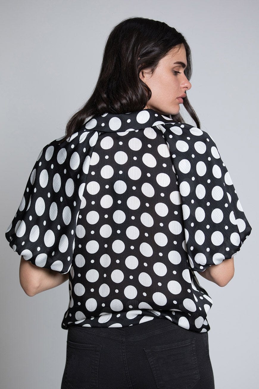 Regular price €89,00 Sale price €26,70 Sale 70%- Twenty29 shirt with large striking black and white polka dots and 3/4 sleeves with volume reaching up to the elbows